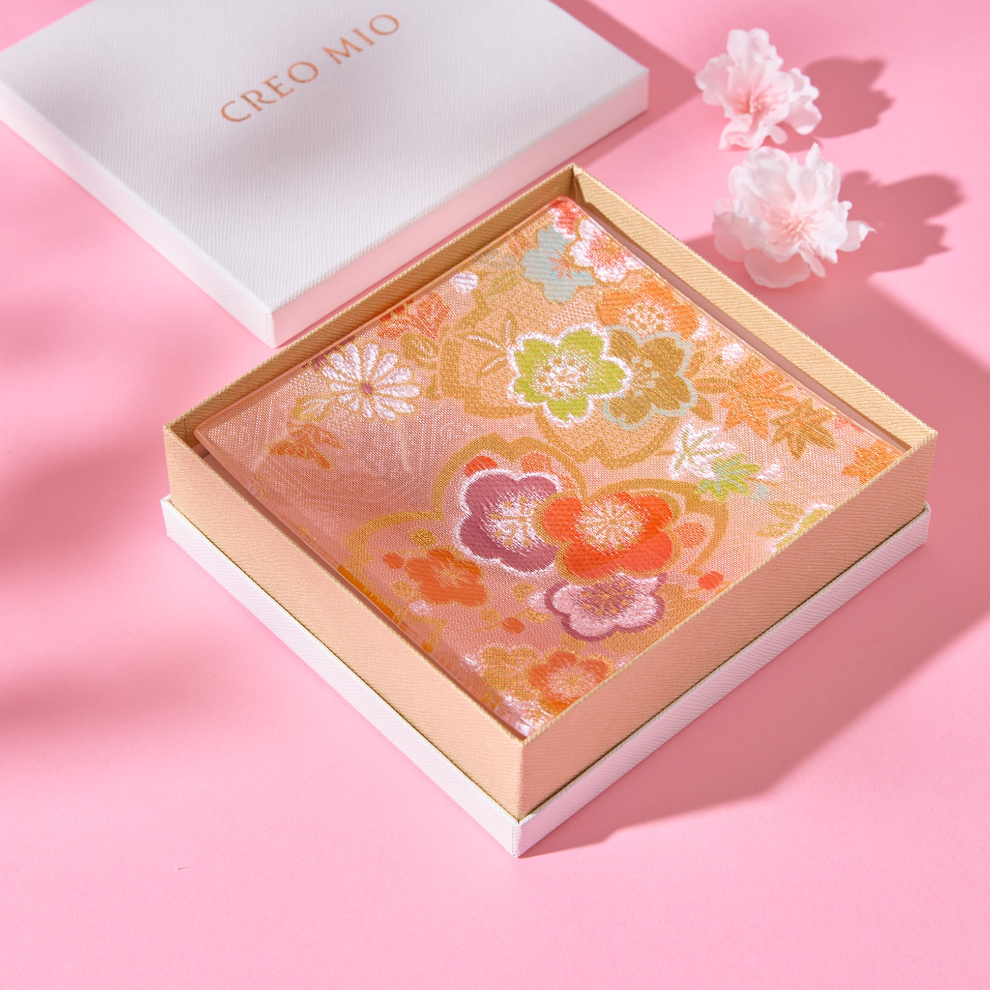 Nishijin Brocade Obi Small Square Glass Plate - Pink