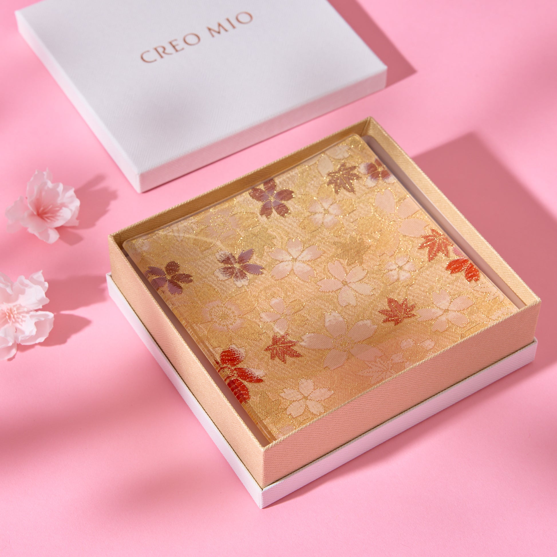 Nishijin Brocade Obi Small Square Glass Plate - Sakura Gold