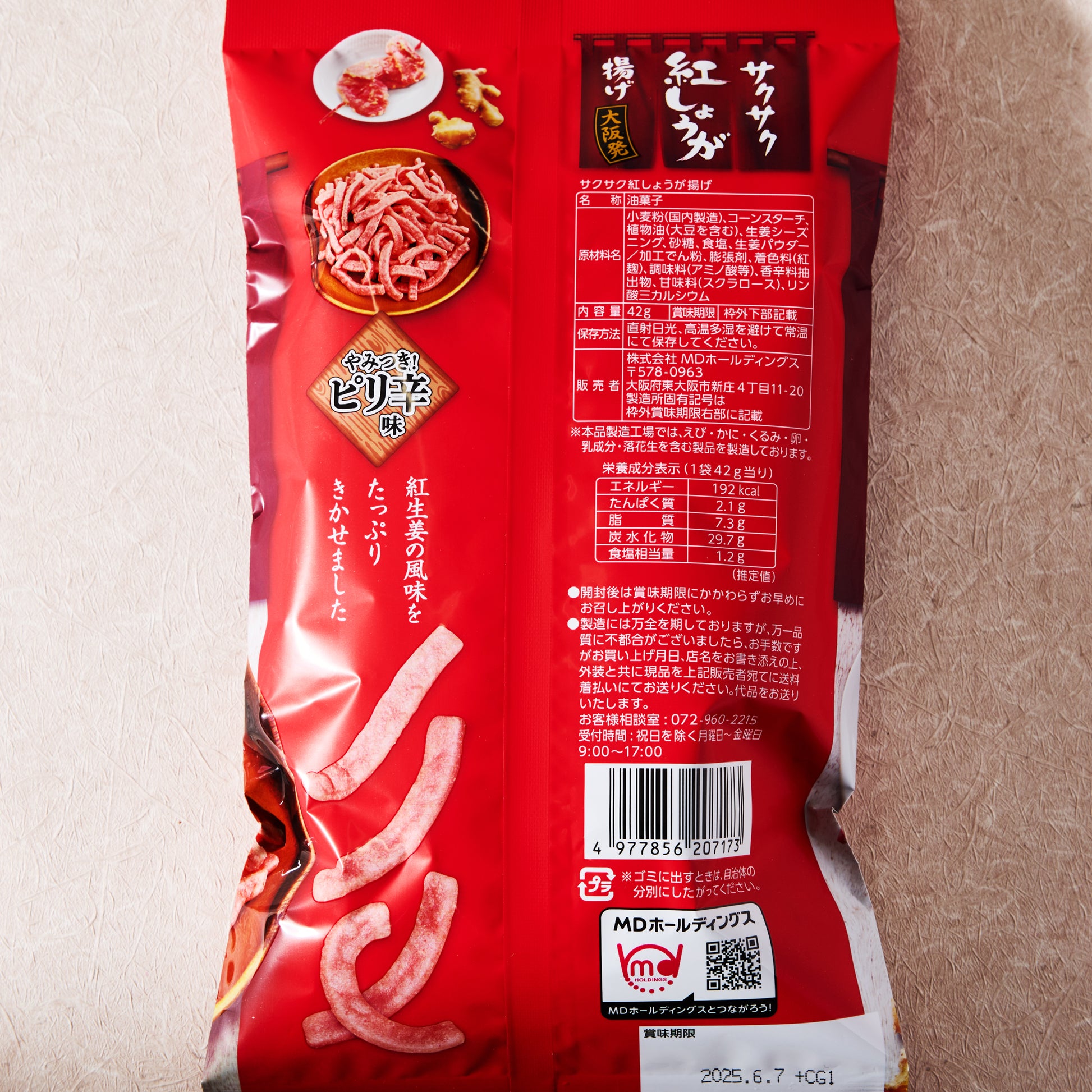 This light, crisp snack, crafted with domestic wheat flour, captures the bold flavor of pickled ginger with a strong aroma and spicy kick.