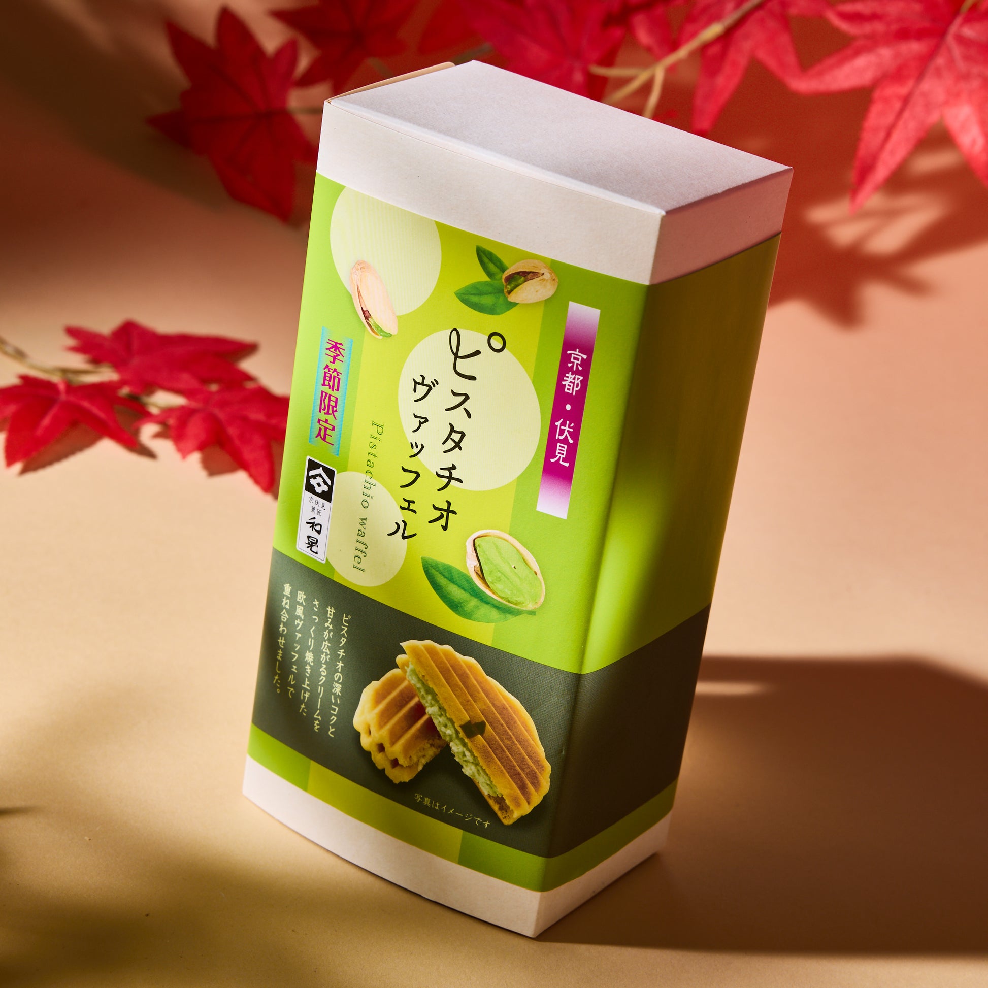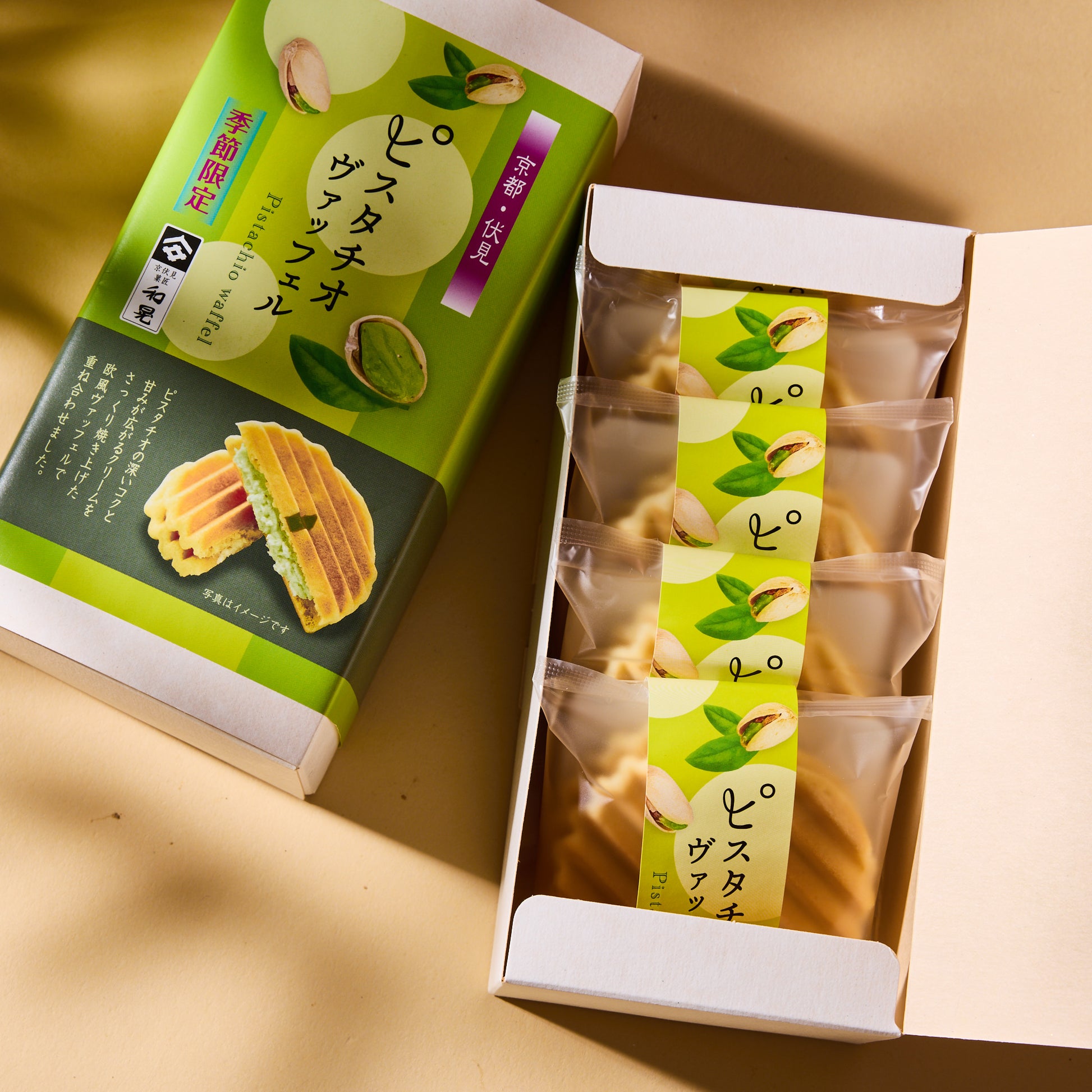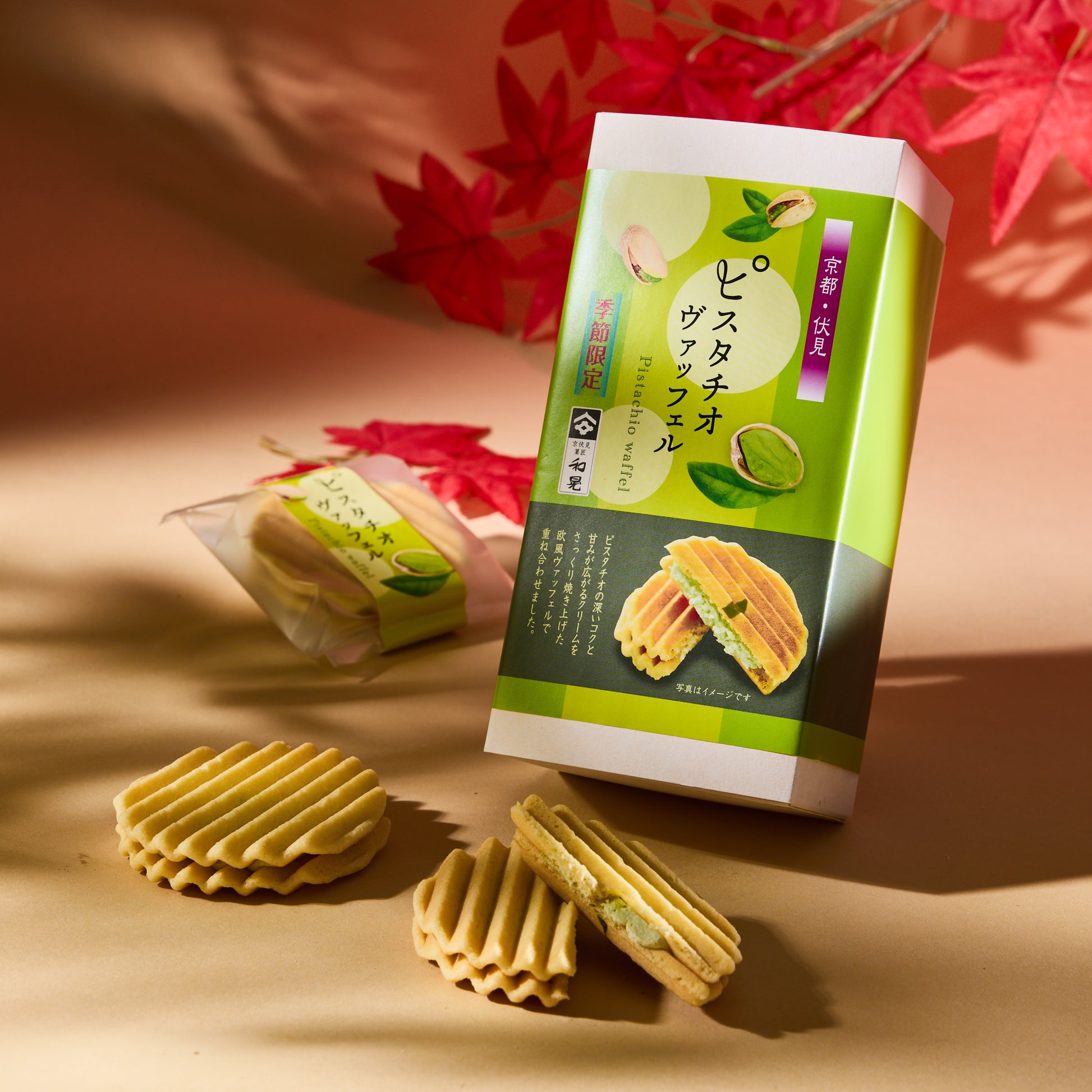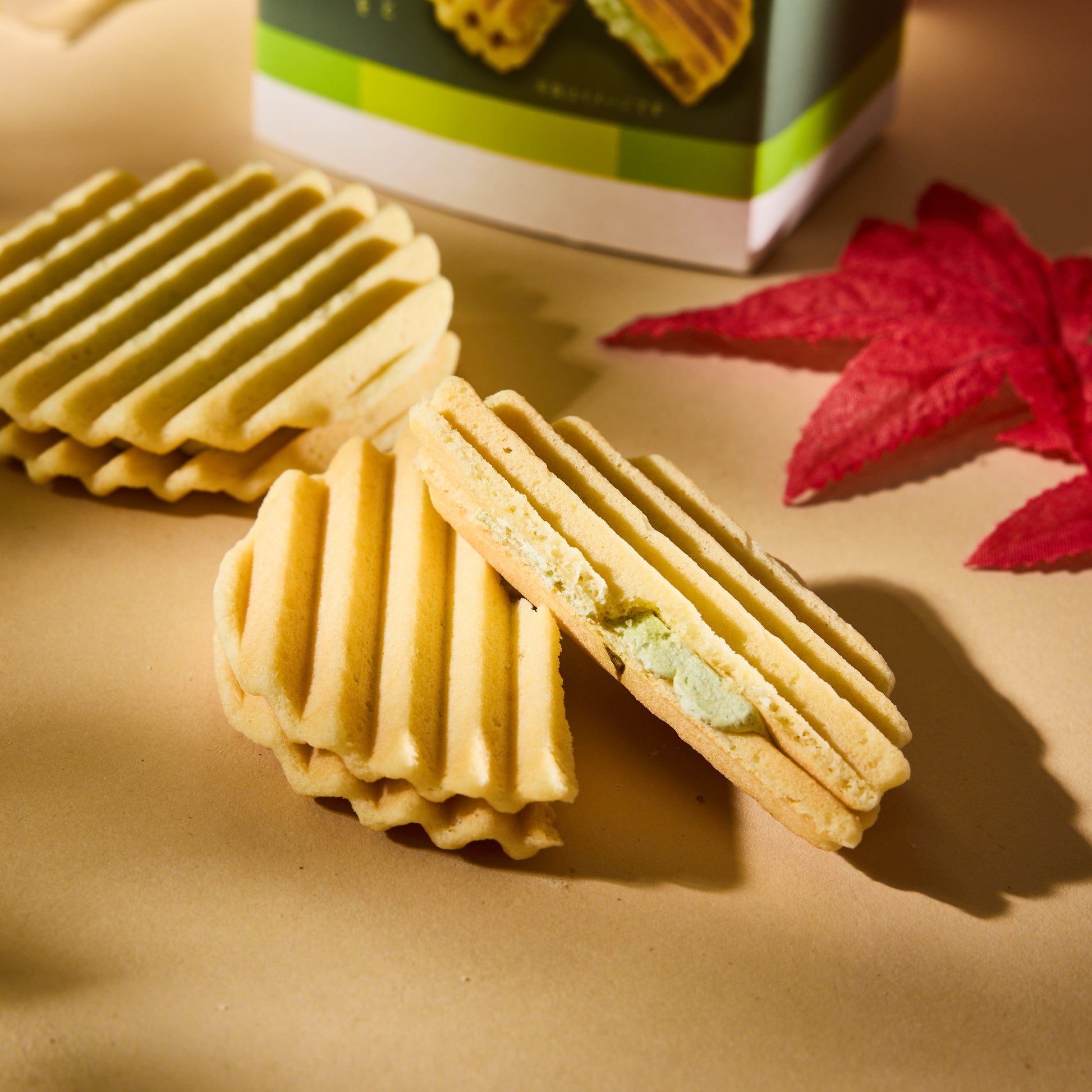 Savor the gentle sweetness of these pistachio waffle sandwich cookies, made with buttery dough baked to a crisp, golden finish. A smooth pistachio cream is layered between two textured cookies, offering a mellow, earthy flavor in every bite.