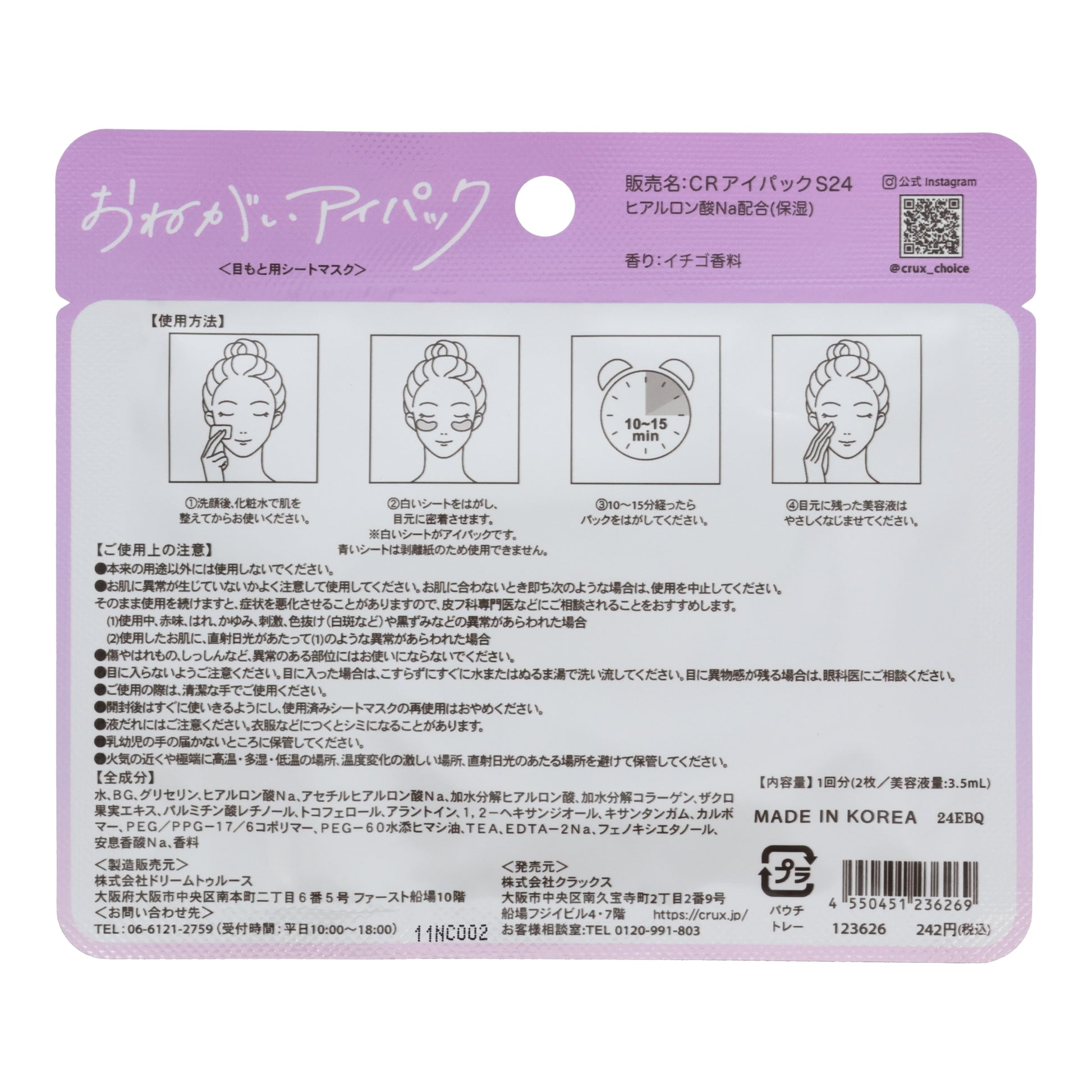 Pamper your eyes with intensive care and a delightful strawberry scent! Relax in the comfort of your home with this adorable mask.
