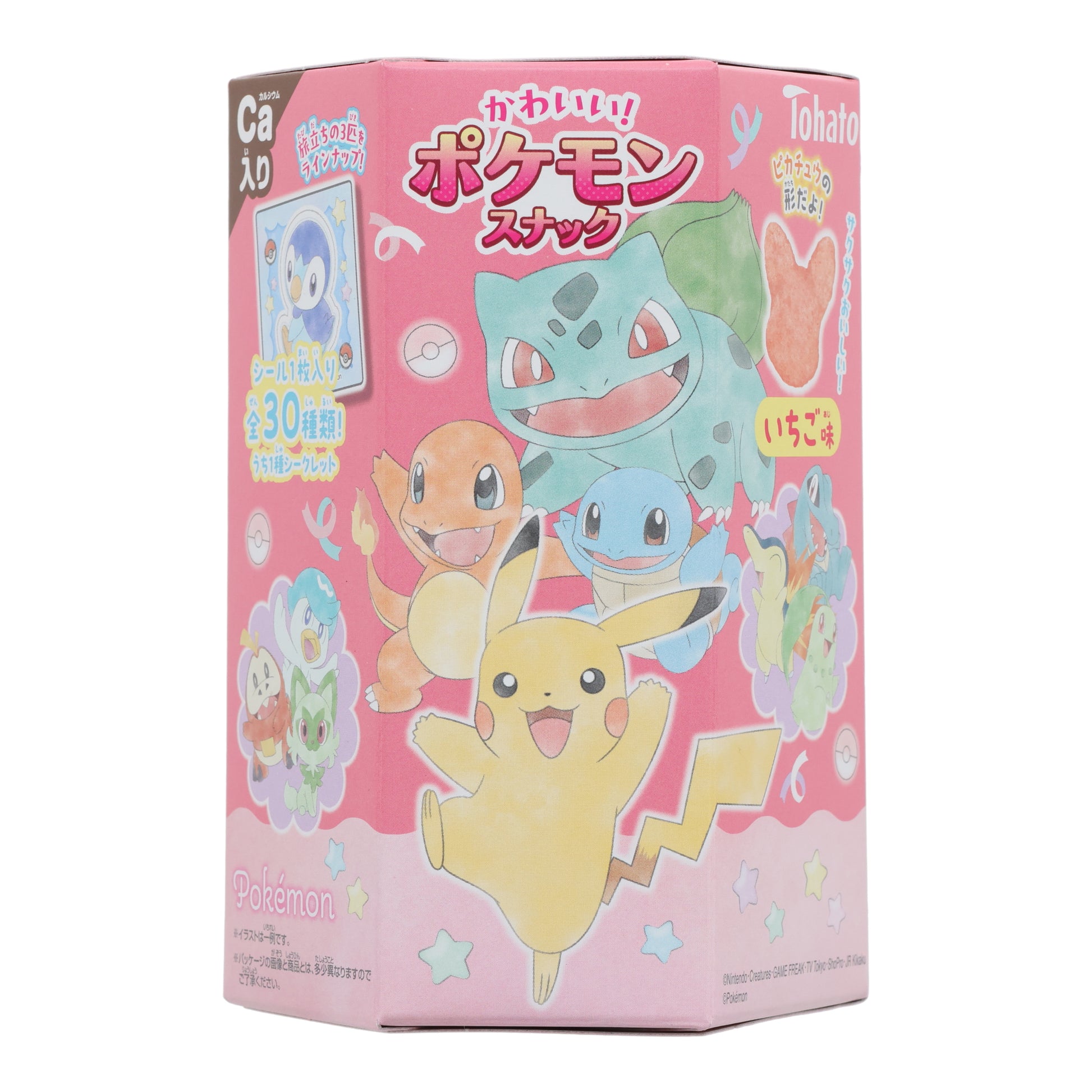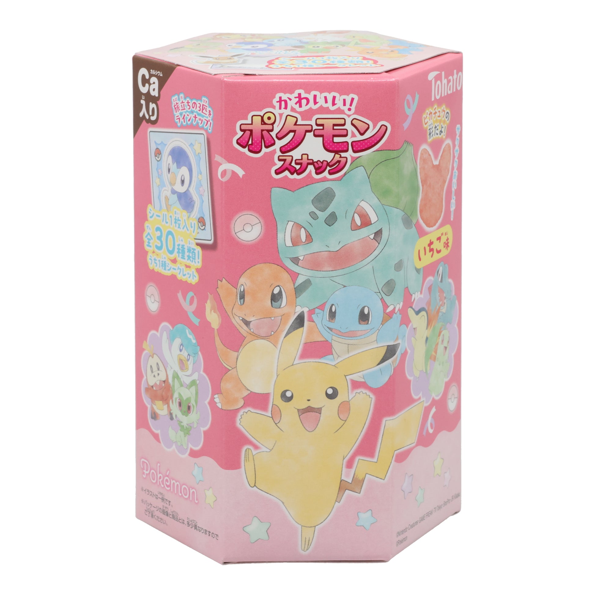 Pokémon Strawberry Corn Puff Chips are a fun and flavorful snack shaped like Pikachu’s adorable face, making every bite as cute as it is tasty. These light, airy corn puffs feature a mellow sweet-and-sour strawberry flavor blended with condensed milk for a creamy, gentle finish. In addition to their playful taste and texture, they’re a cheerful source of calcium, perfect for snacking anytime. Each box also includes one collectible Pokémon sticker selected from 30 different designs, adding an extra surprise that makes this snack even more exciting for Pokémon fans.