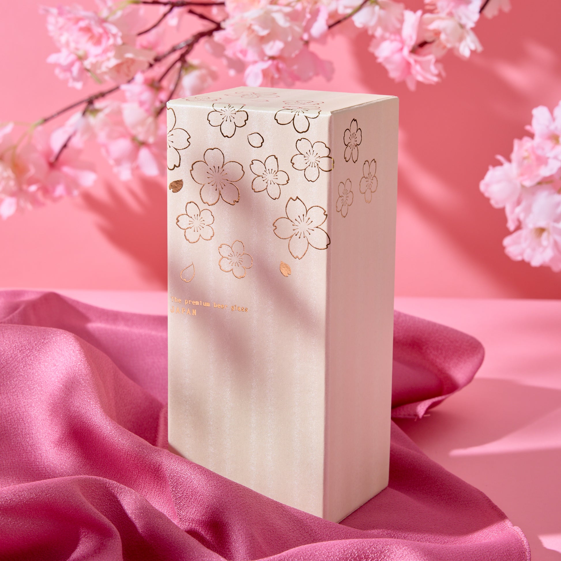 Brilliant as crystal and refreshingly modern in character, this premium beer glass shimmers with a finely textured surface and dancing gold sakura motifs.