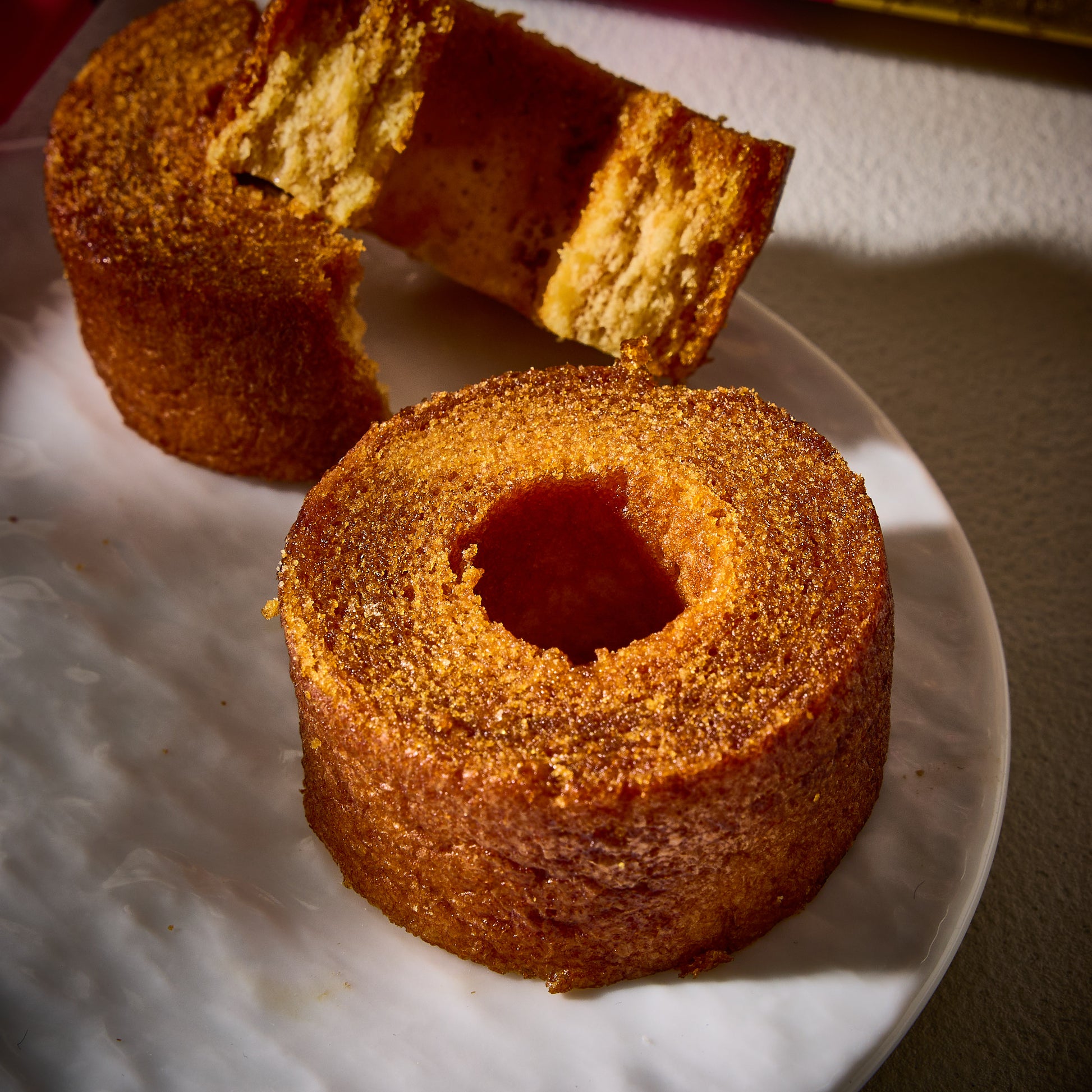 This Japanese baumkuchen is meticulously crafted by layering pudding-flavored batter, baking each layer until golden, and then dipping it in rich caramel sauce. It is then lightly sprinkled with sugar and caramelized to perfection, creating a beautiful golden finish.