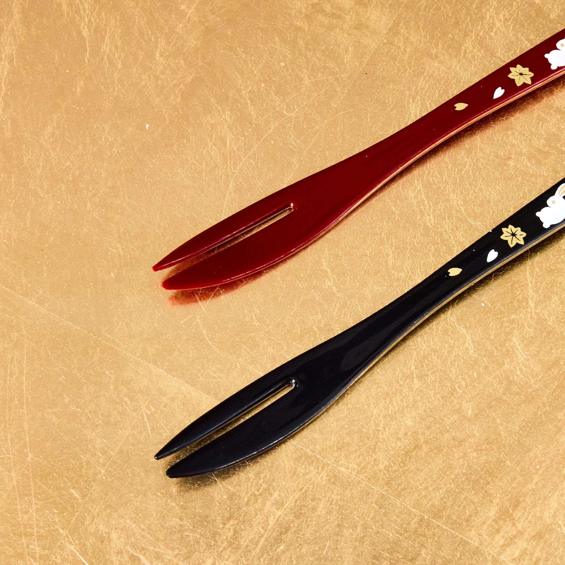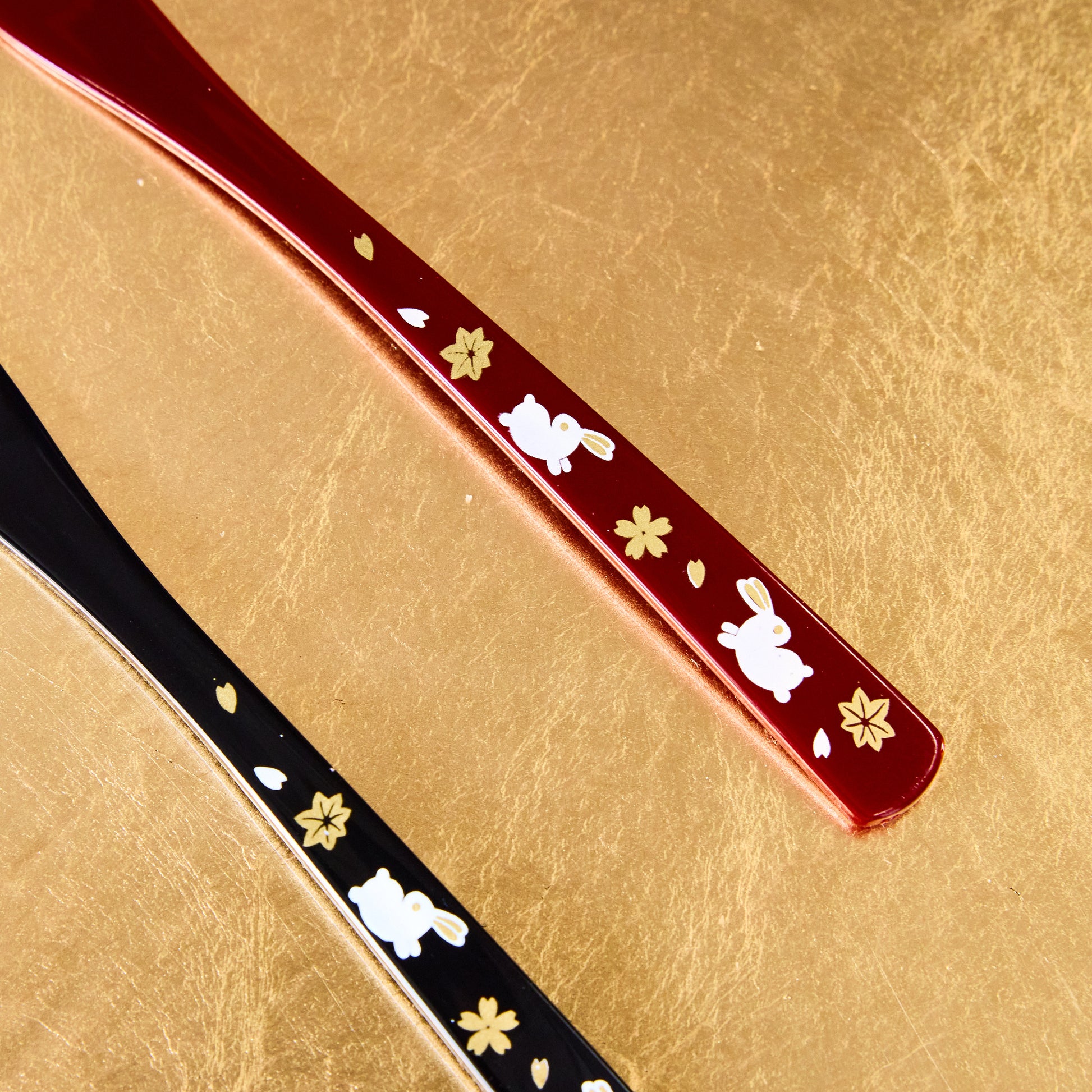 Crafted in the Yamanaka lacquerware tradition, each fork features a graceful rabbit motif—a beloved symbol of good fortune in Japan. The glossy finish and delicate design bring elegance to the ritual of enjoying seasonal sweets, while the lightweight form offers both beauty and practicality.