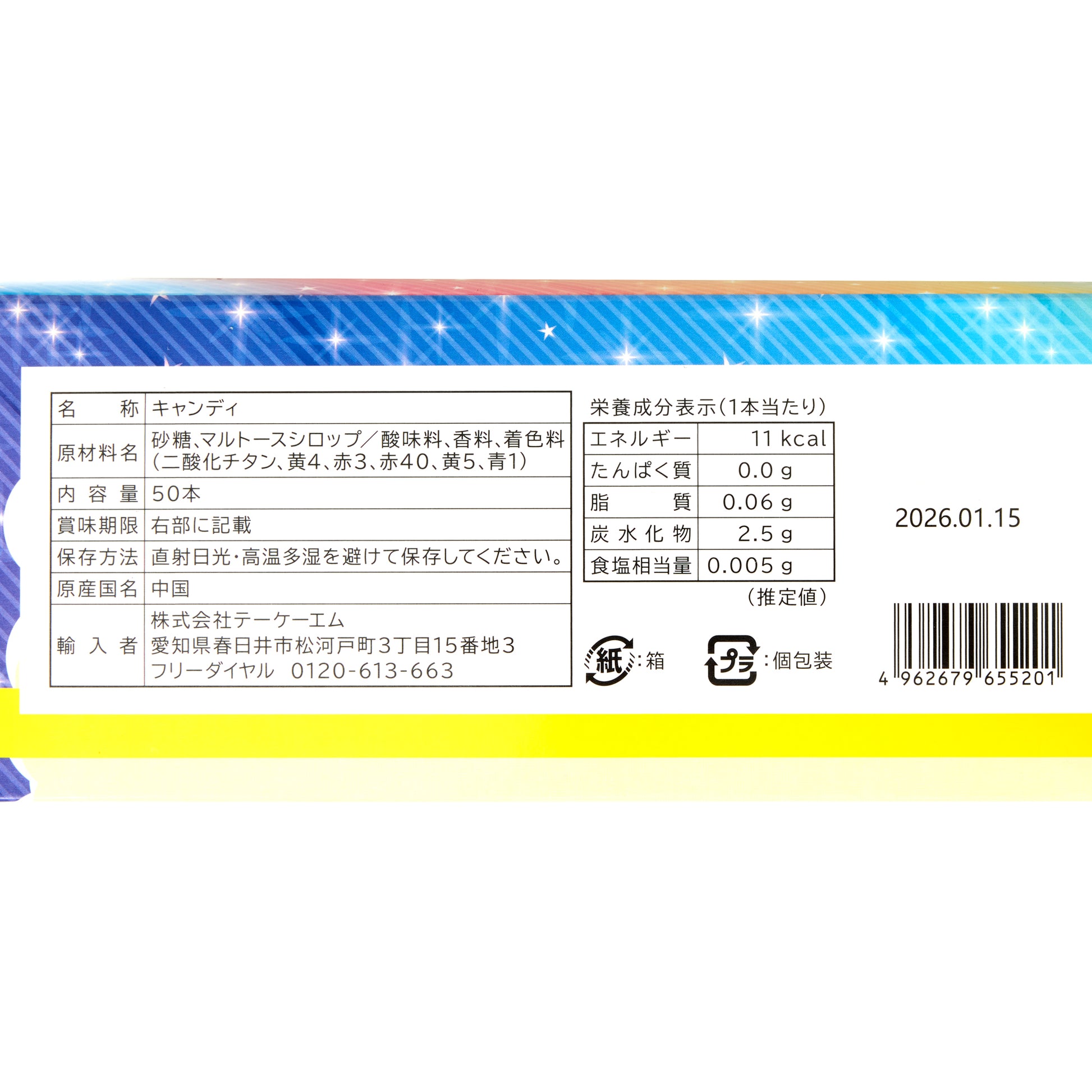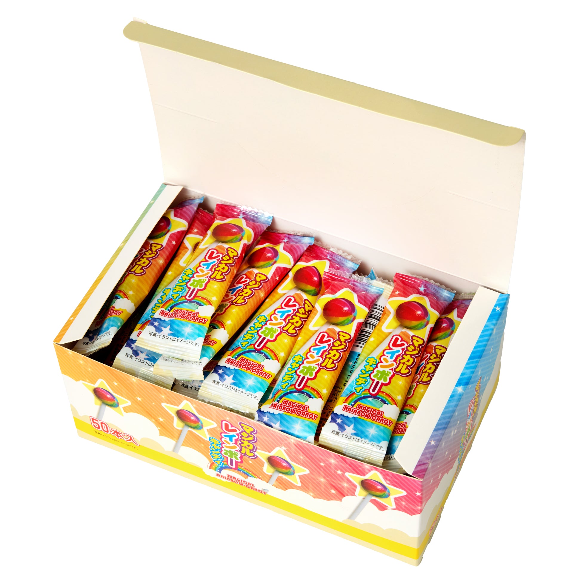 Vibrant and colorful, these lollipops delivers a sweet, sugary flavor with cute swirls. It’s a classic, cheerful treat perfect whenever you want a little burst of sweetness! Each box comes with 50 packets of these lollipops.