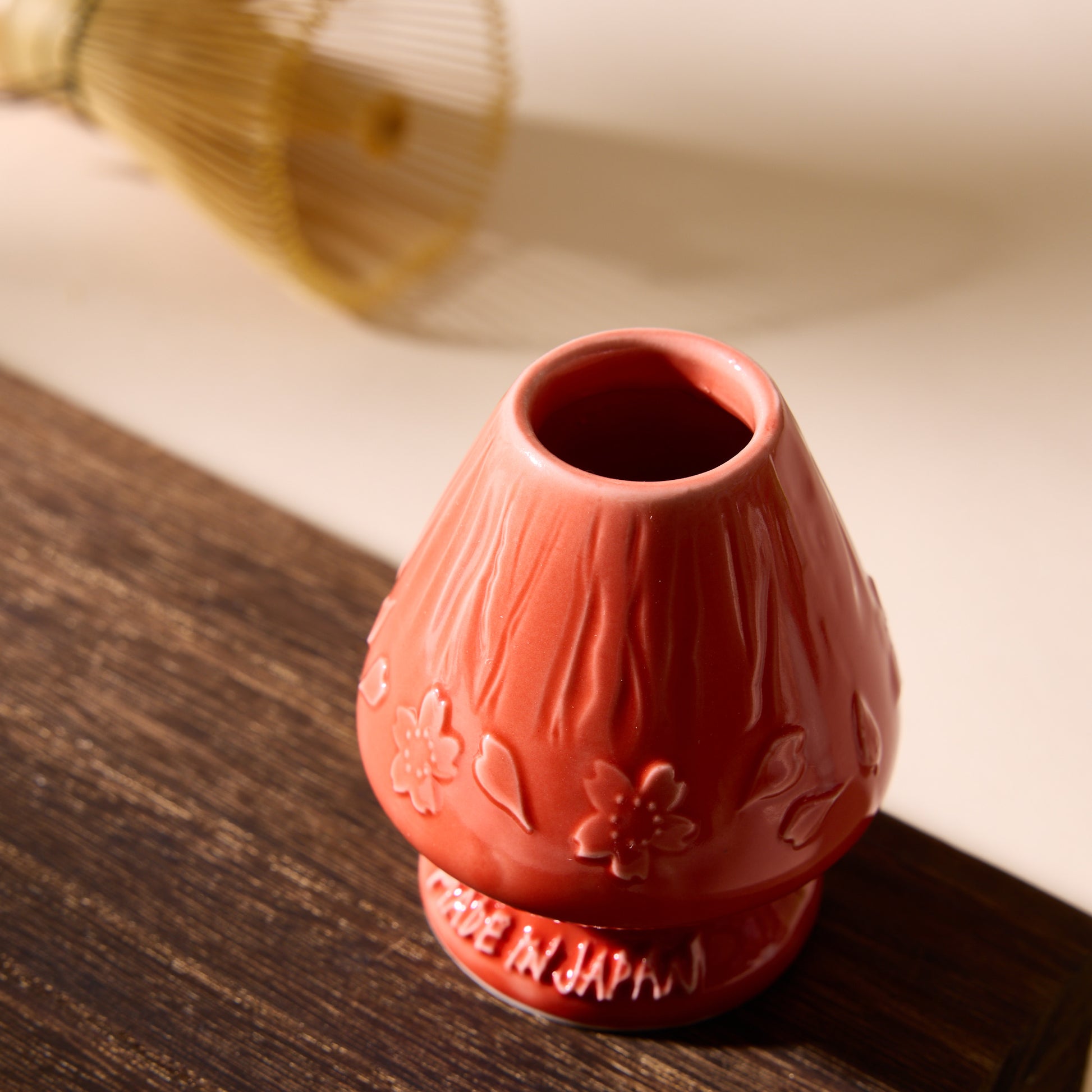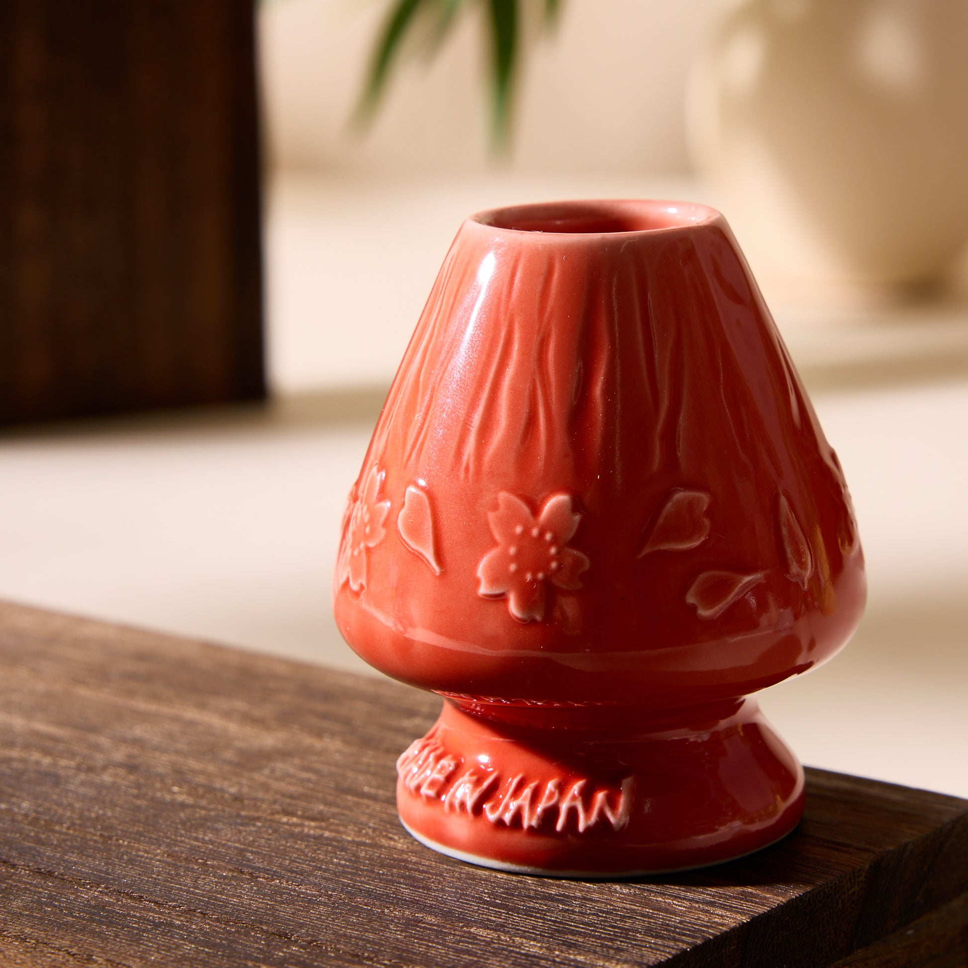 Similarly shaped like the majestic peak of Mt. Fuji, this red stand is designed to cradle your chasen (茶筅) bamboo whisk and help maintain its delicate shape.