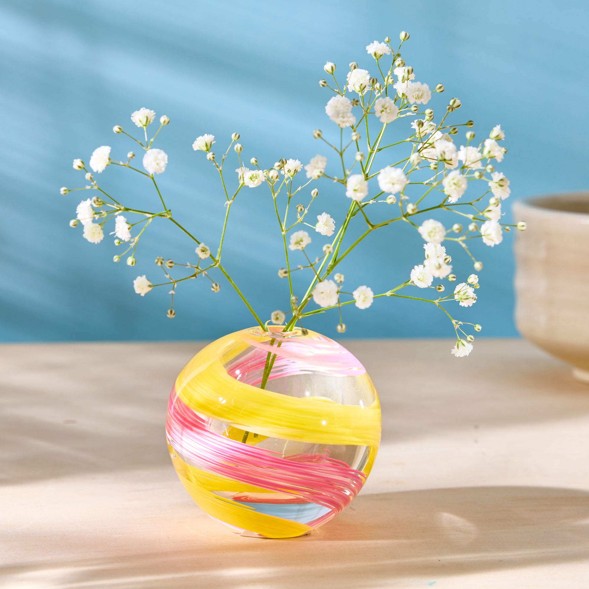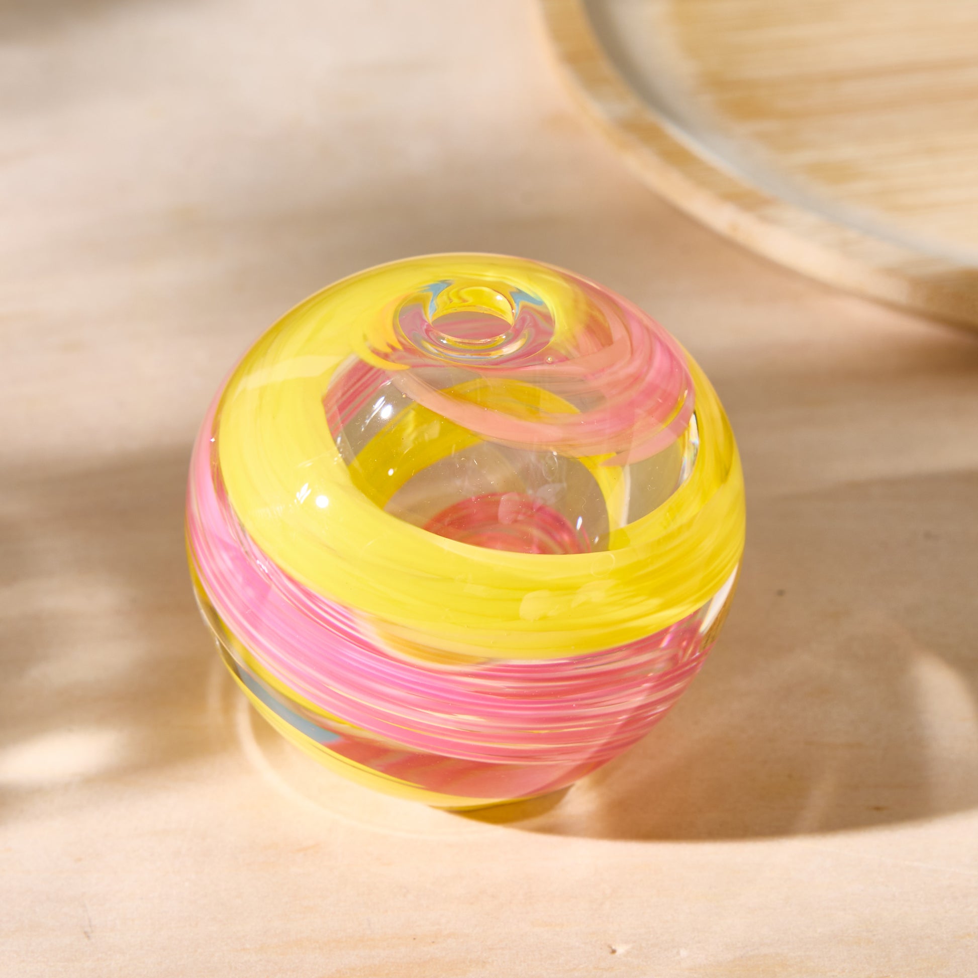 This piece features delicate swirls of pink and soft yellow, capturing the lightness and fleeting charm of sakura petals carried on the wind. Compact yet eye-catching, it can be used as a single-stem vase, aroma diffuser, or decorative accent—bringing a refined touch to any space.