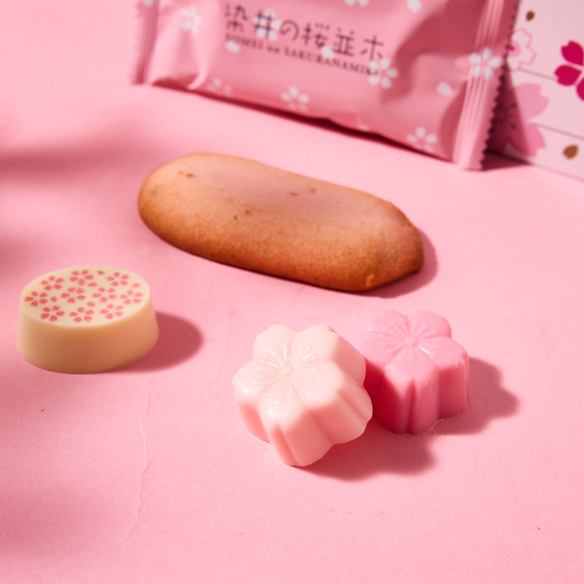 Enjoy two unique white chocolate flavors: one with smooth sakura cream filling, and the other with a sakura aroma cream filling.
