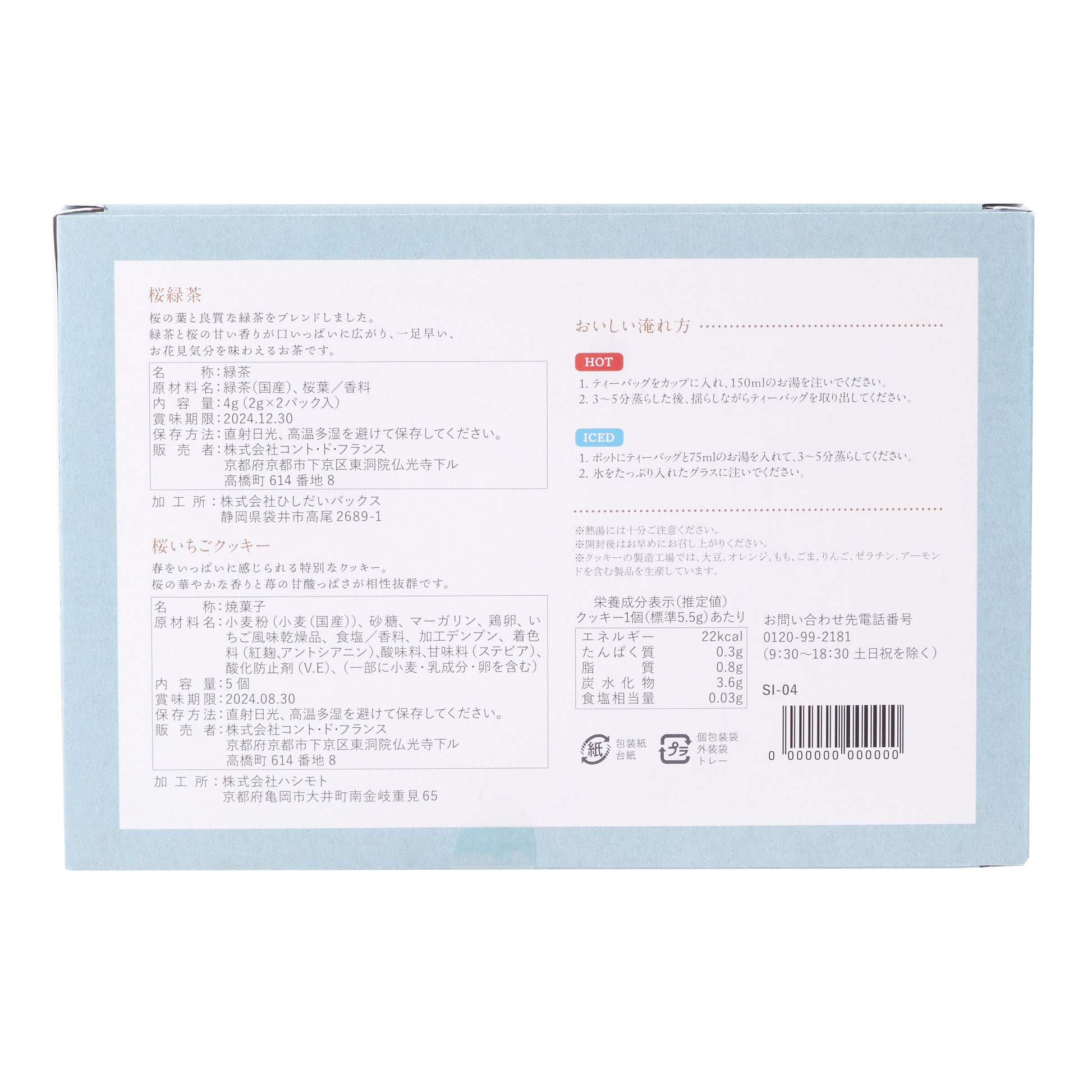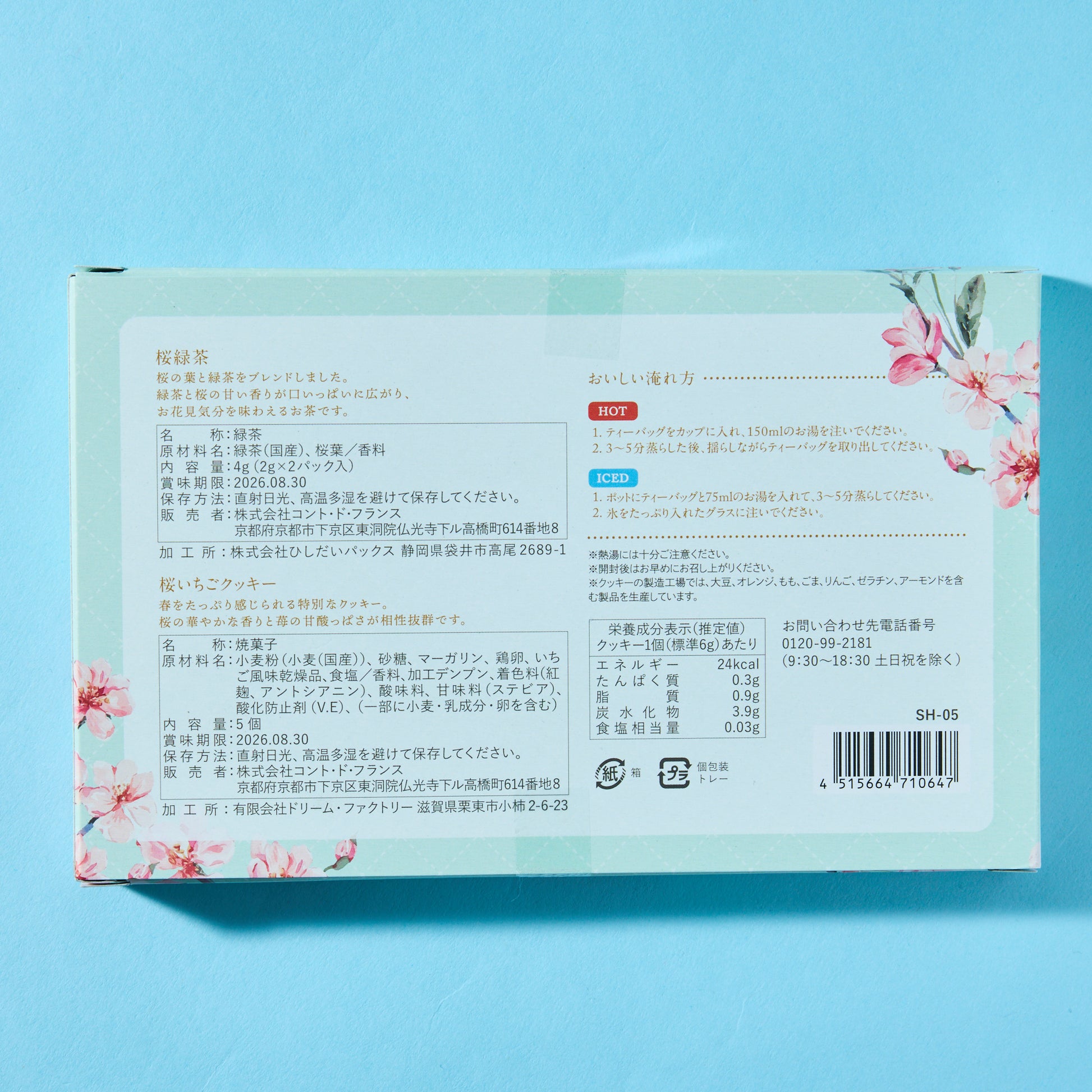 The green tea is infused with cherry blossom leaves, filling your cup with a sweet cherry blossom aroma that transports you to hanami, or cherry blossom-viewing, season. Paired with this tea are crumbly strawberry cookies, where the sweet fragrance of cherry blossoms complements the tartness of strawberries, creating a perfect harmony of flavors.