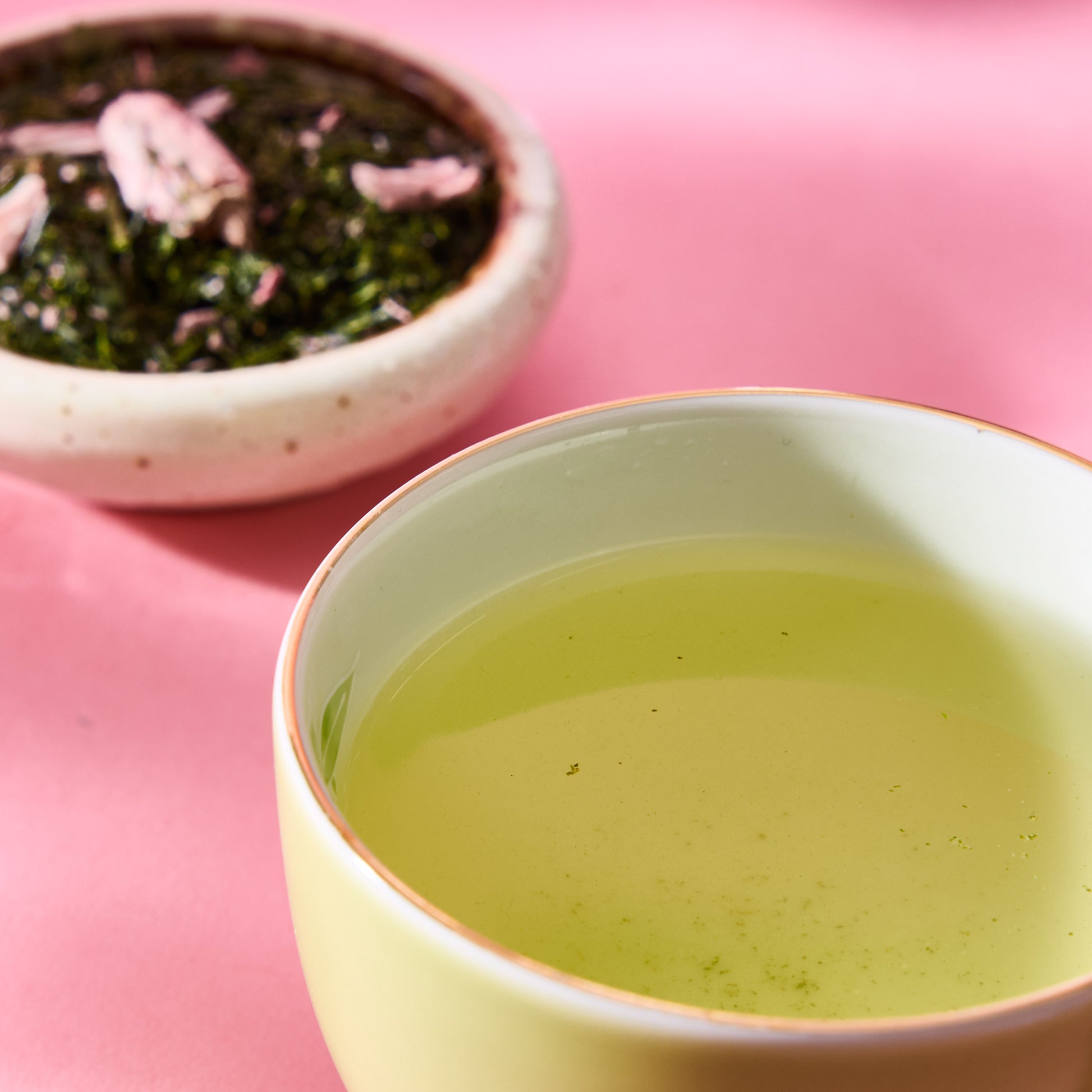 Sakura Sencha Tea is an organic sencha that delivers a refreshing flavor and fresh aroma, with freeze-dried Japanese cherry blossoms thoughtfully blended in.