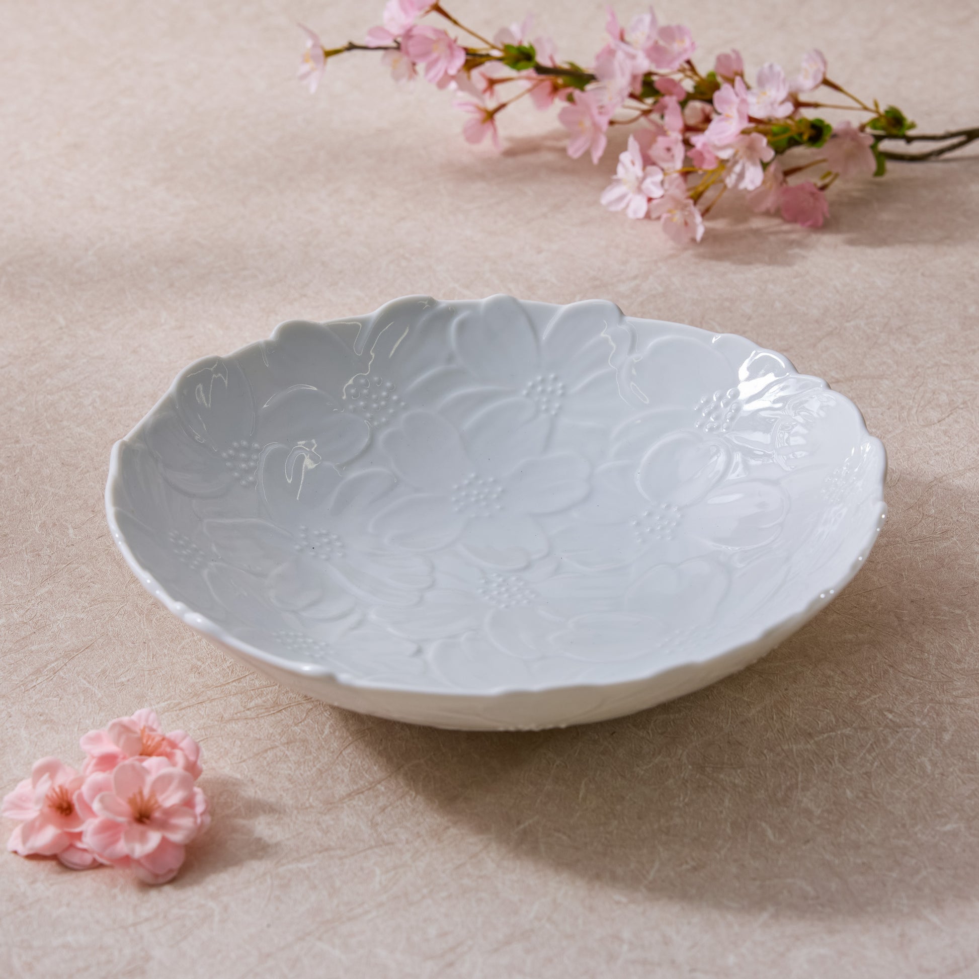 This exquisite plate showcases the beauty of sakura flowers, delicately designed in white porcelain.