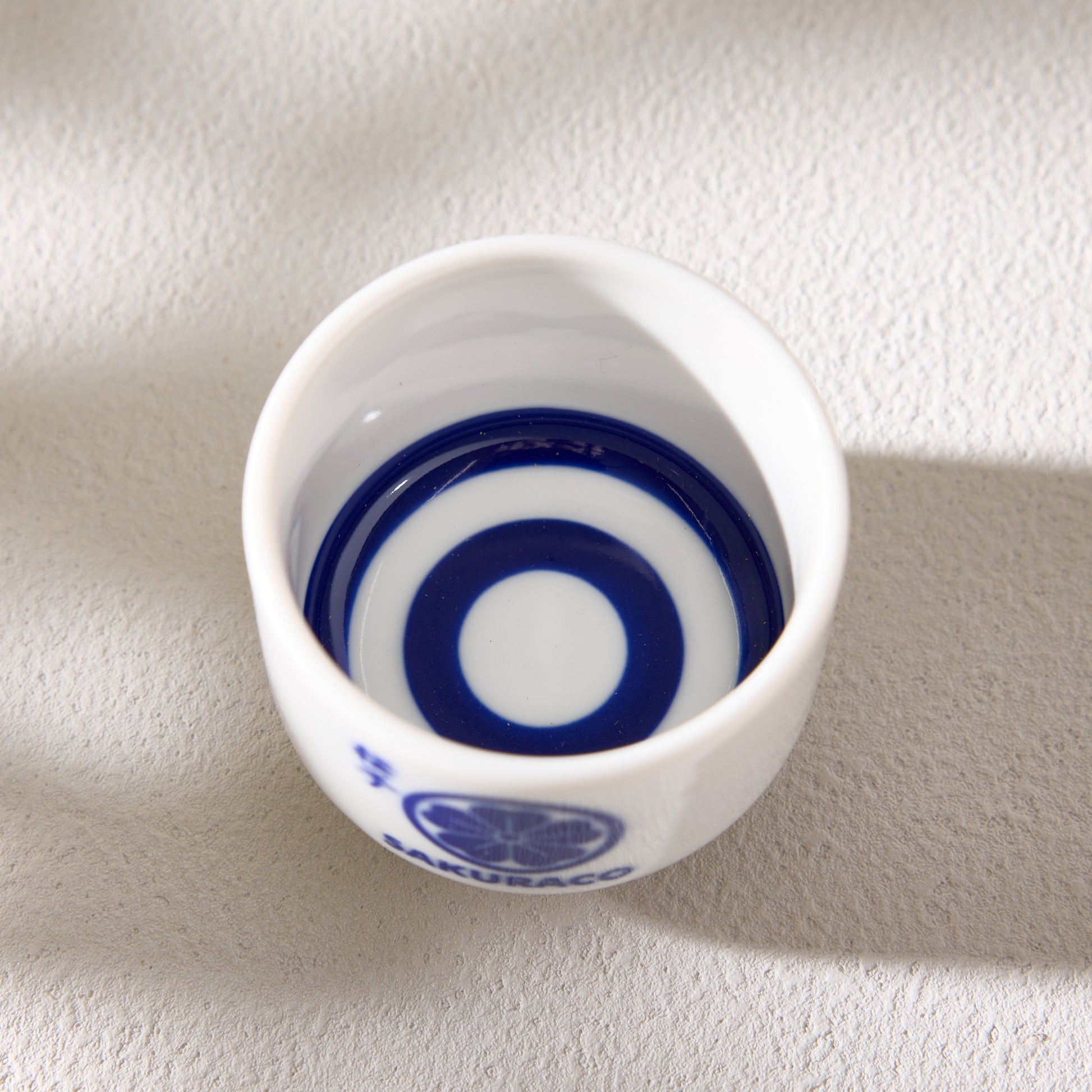 The distinct blue and white double circle pattern on the bottom of the cup is strikingly named jenome, a snake’s eye.