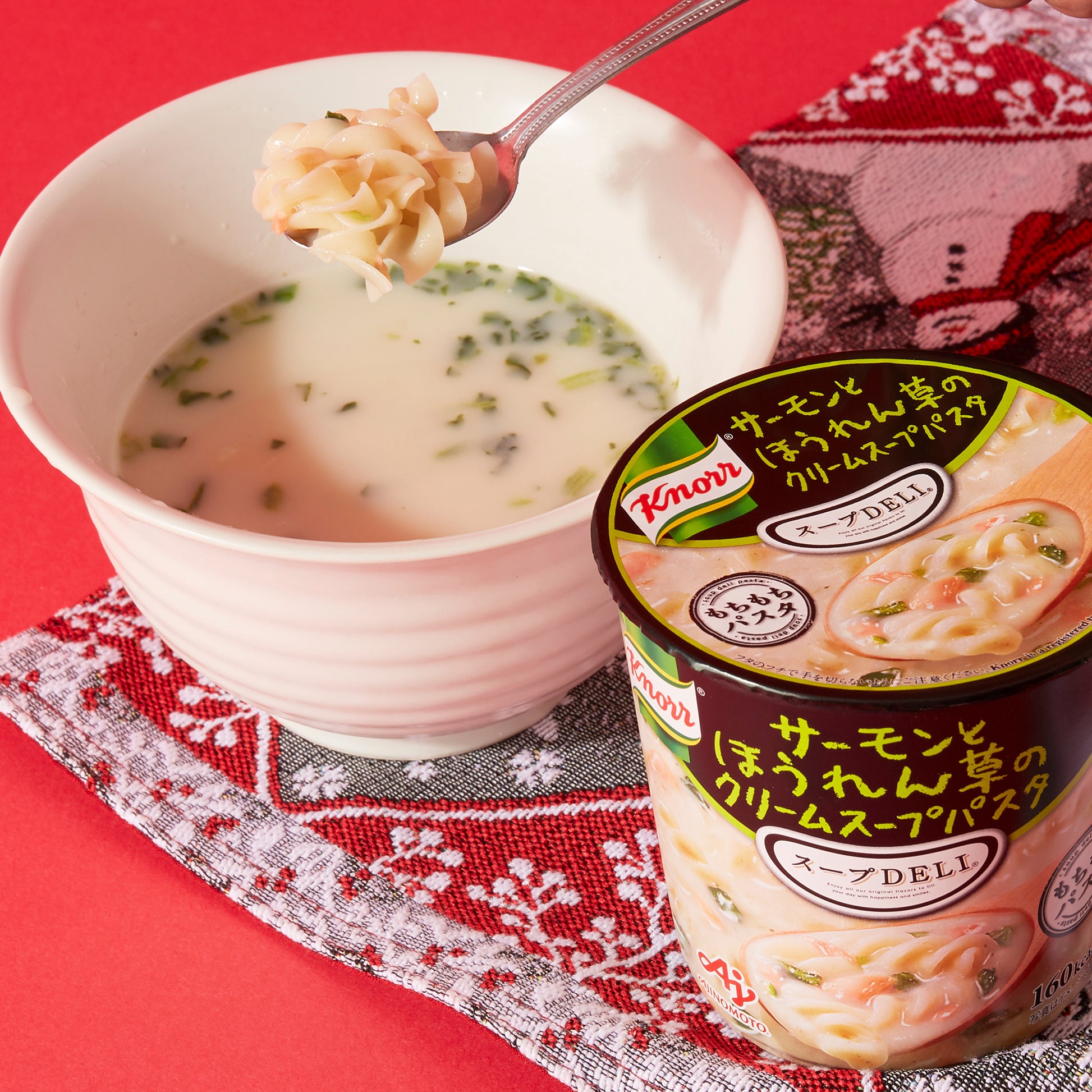 Thick, creamy, and perfect on a cold day. Colorful spinach and tasty salmon complement soft, twisty noodles in this cream-based soup.