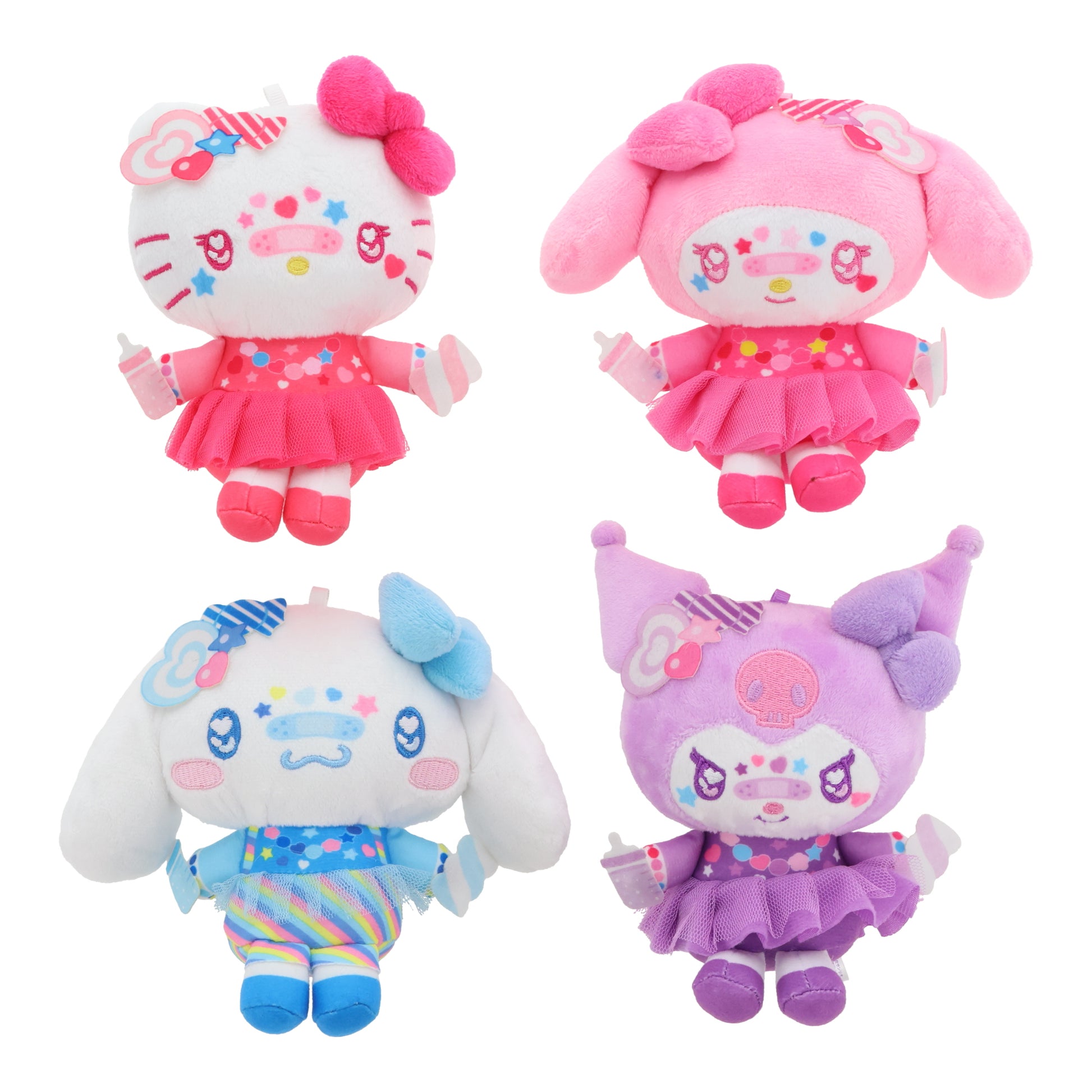 These Sanrio plushies are inspired by Harajuku's decora fashion, featuring vibrant colors and detailed decorative elements.