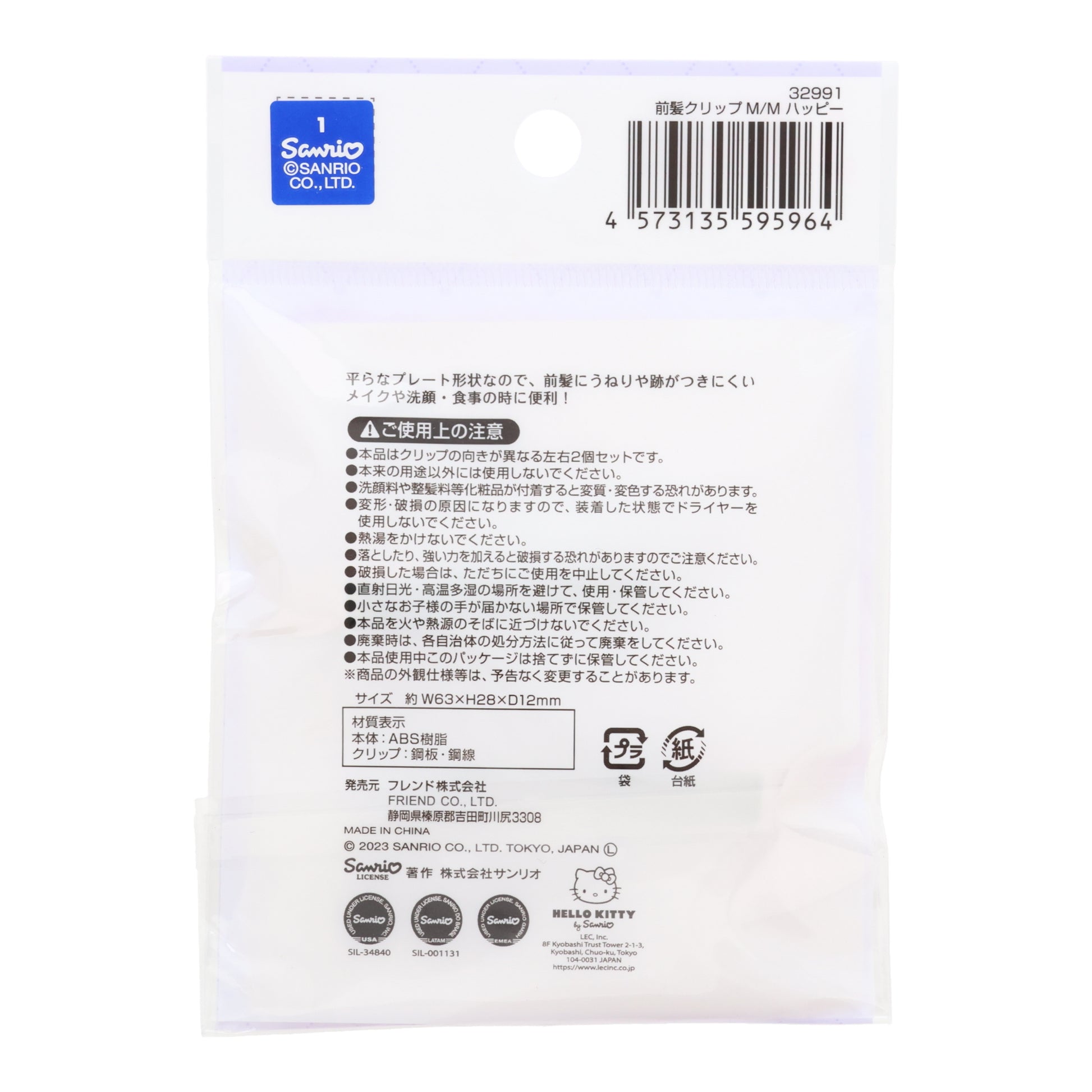 sanrio My Melody Bangs Clip 2 pieces