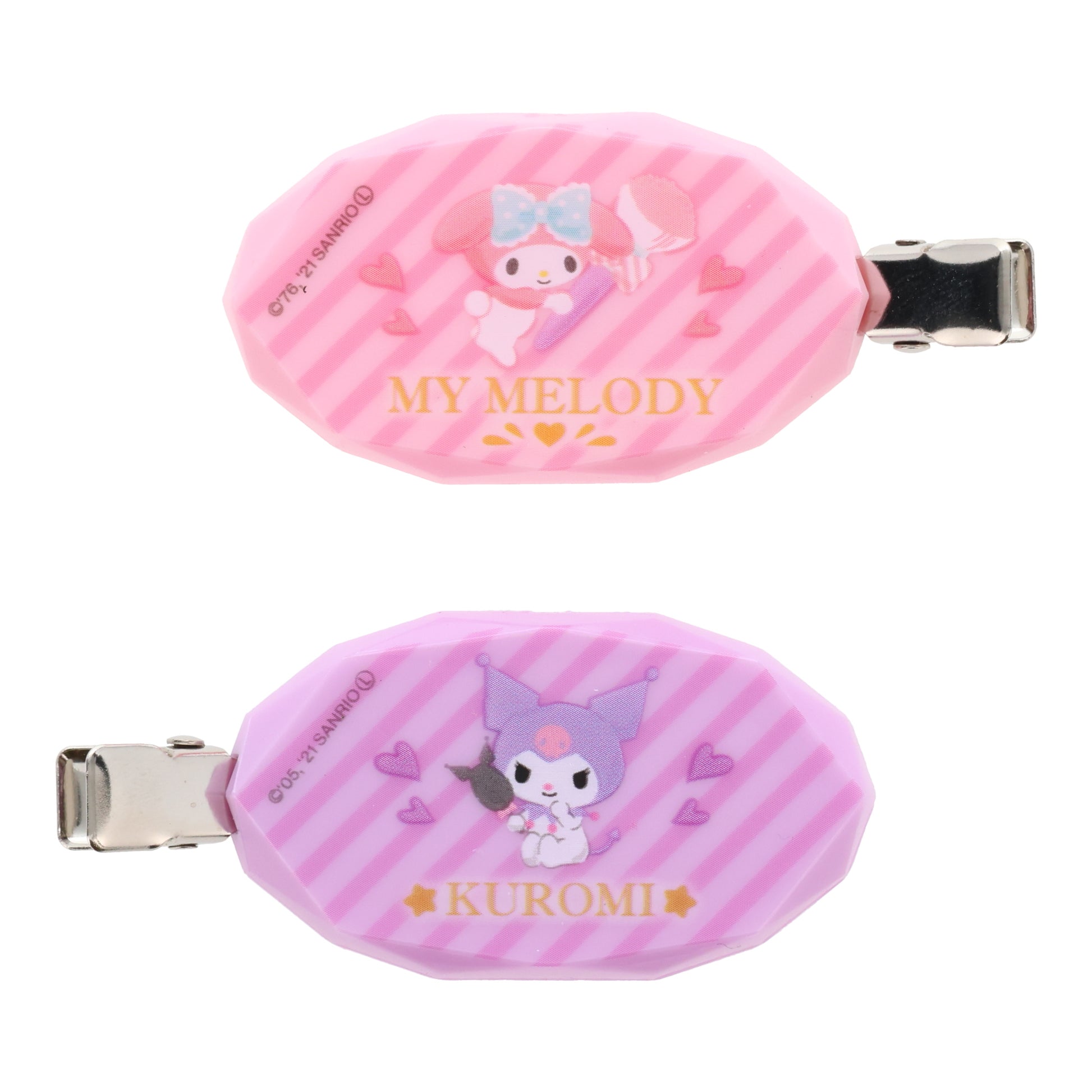 Add a touch of kawaii charm to your look with these super cute Sanrio hair clips featuring My Melody and Kuromi! Designed to securely hold your bangs in place, each set includes two clips with opposite orientations, making them perfect for styling both sides.