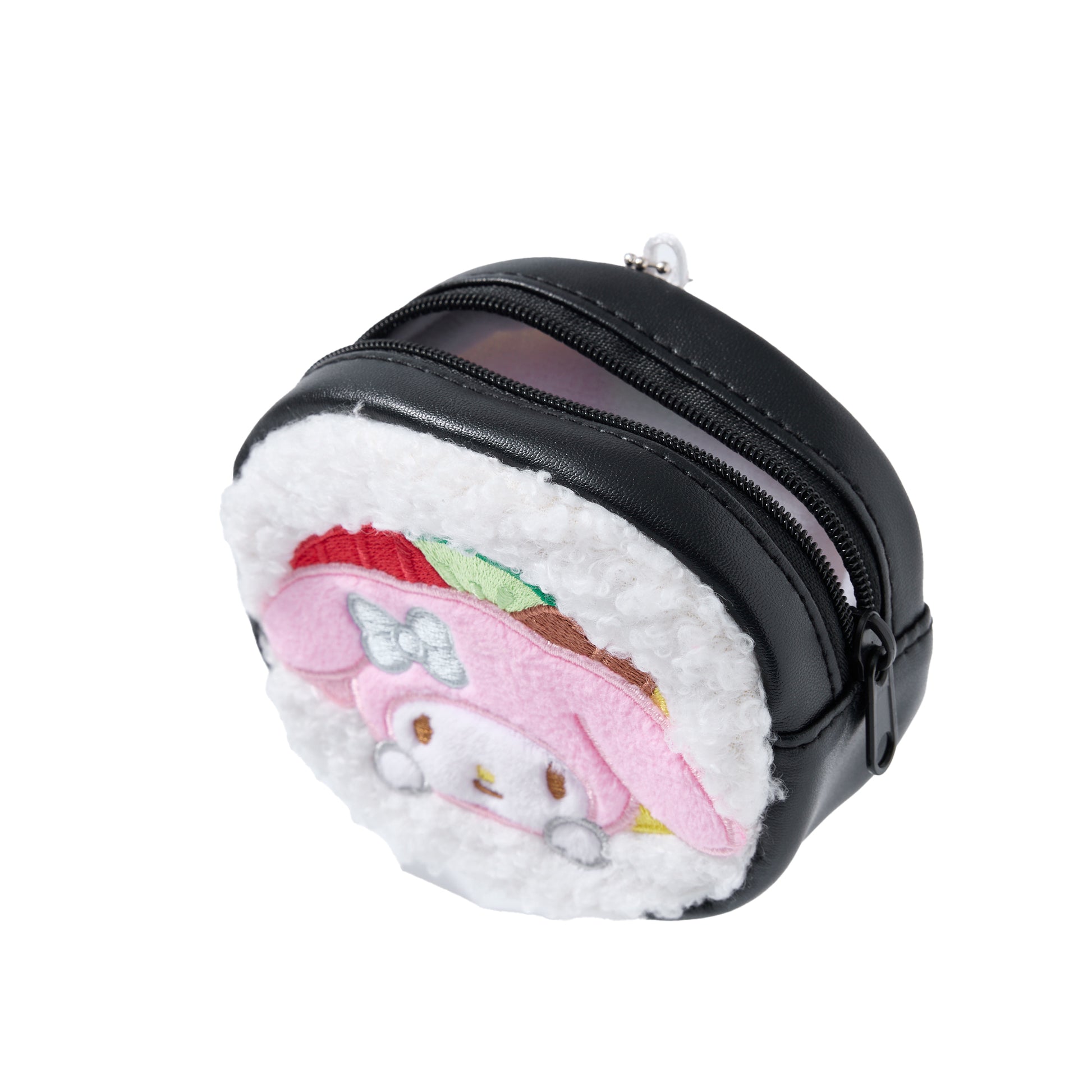 Each mini pouch features a cute Sanrio character tucked inside a sushi roll, adding a fun twist to your accessories.