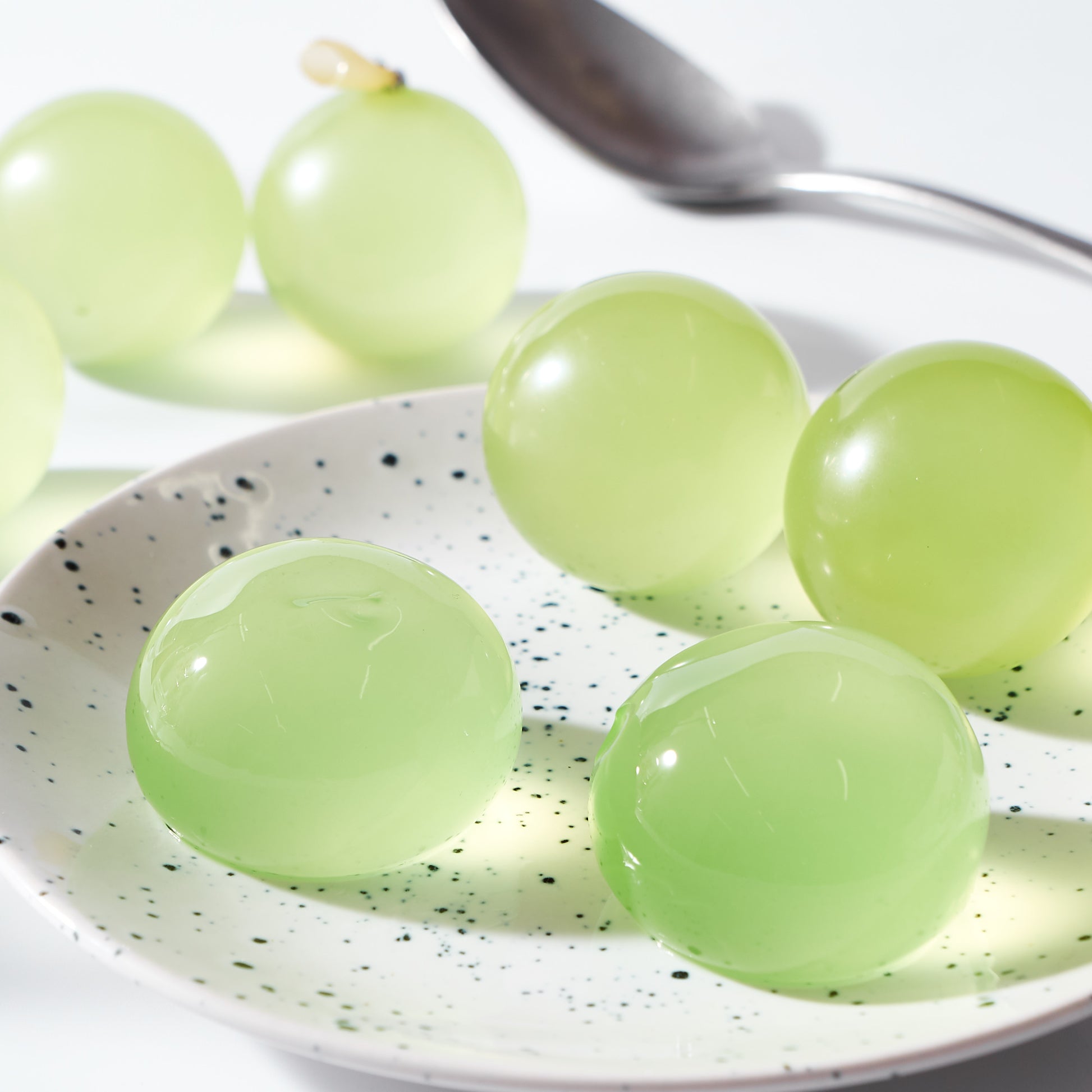 Get ready for a blast from the past with the Shine Muscat Balloon Jelly! Just poke the ball with a toothpick and watch as a round jelly pops out.