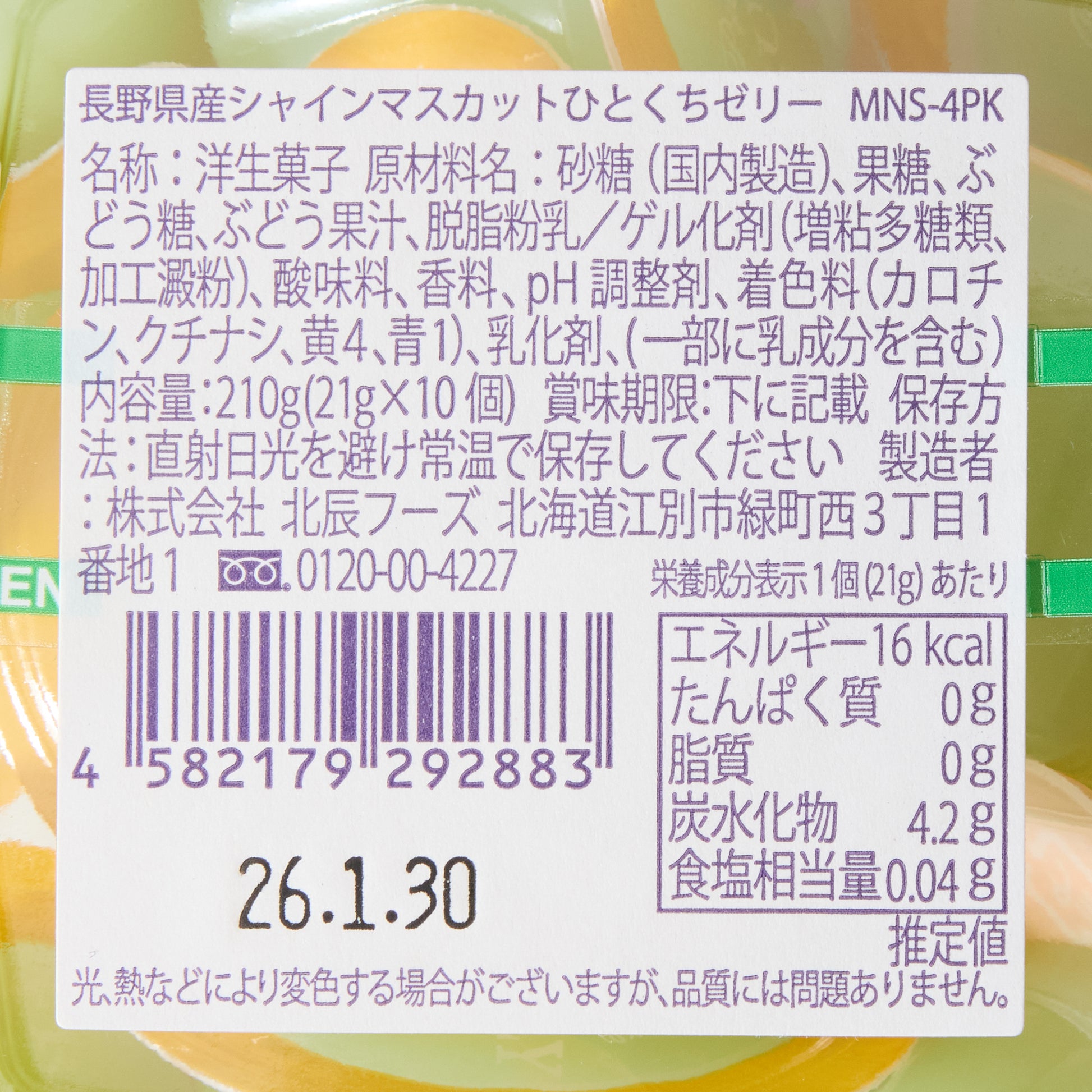 Savor the elegant sweetness of Nagano-grown Shine Muscat grapes with this refreshing jelly, made using 100% locally sourced juice. Each bite bursts with the fruit’s signature aroma and delicate, juicy flavor, offering a taste as fresh as the vineyards themselves. Perfect as a light treat or thoughtful gift, it can also be enjoyed frozen for a delightfully cool, sorbet-like experience.