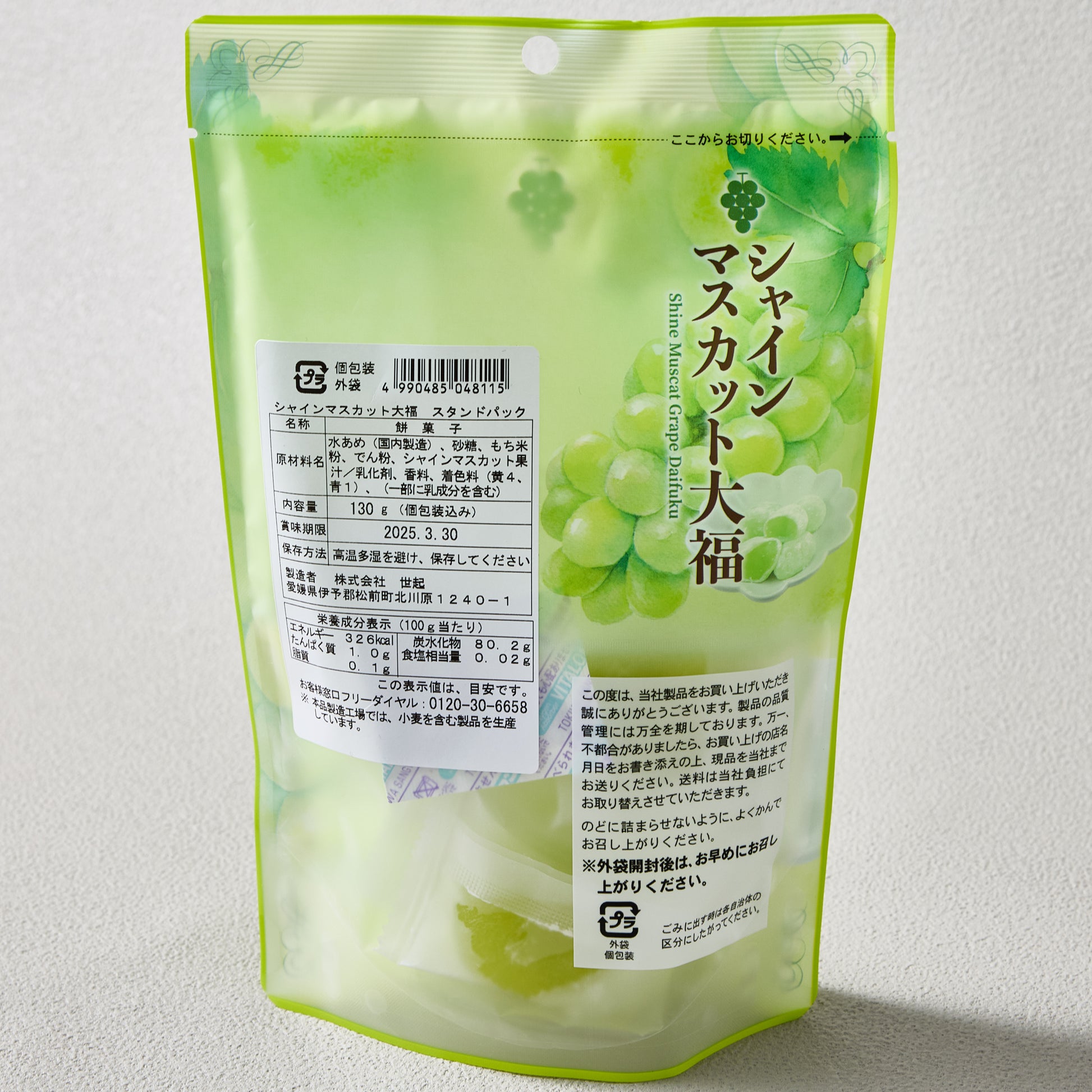 Savor the elegant flavor of Shine Muscat Grape Mochi, a luxurious take on wagashi. Each piece of Japanese mochi is delicately infused with the refreshing sweetness of premium Shine Muscat grapes, celebrated for their fragrant aroma and natural juiciness.