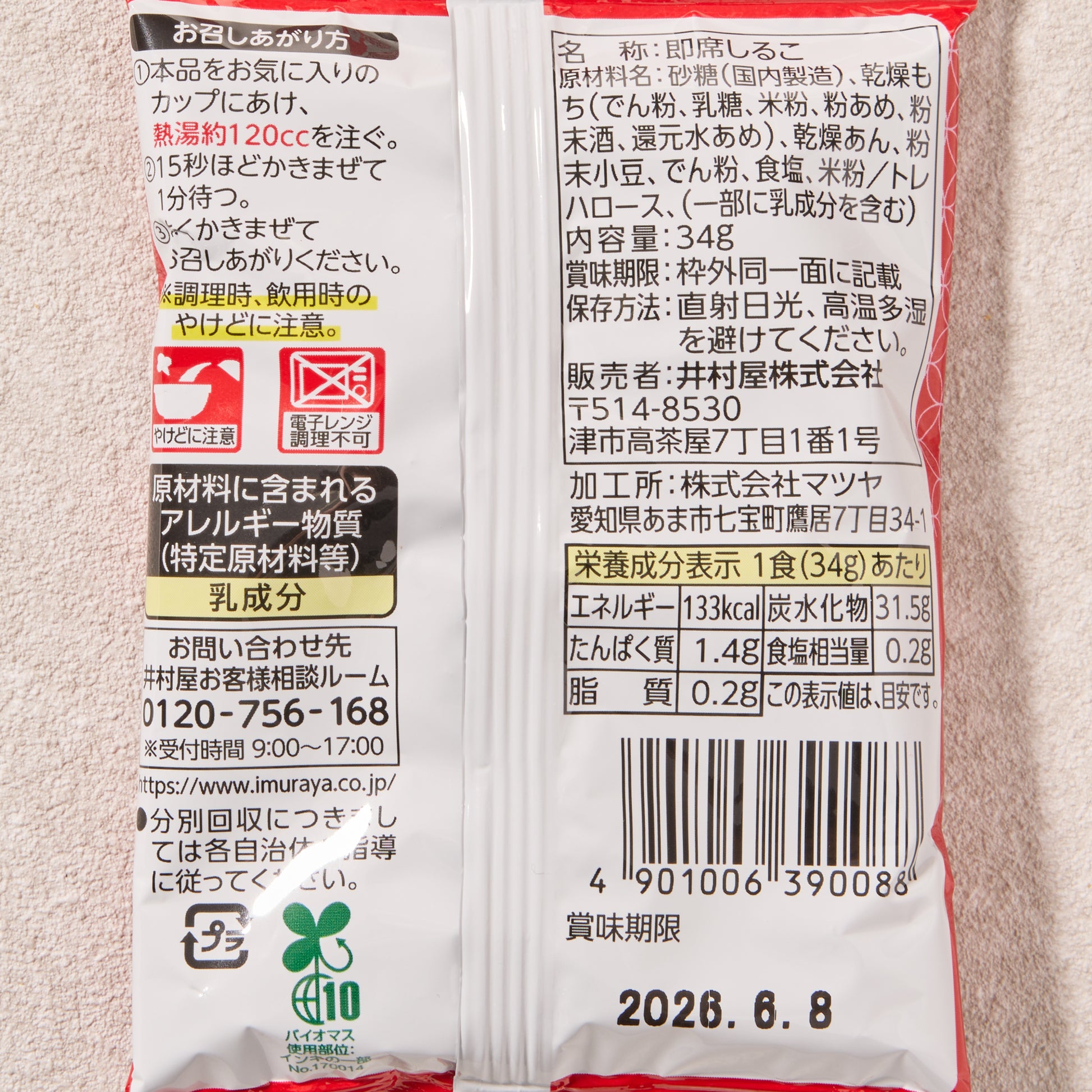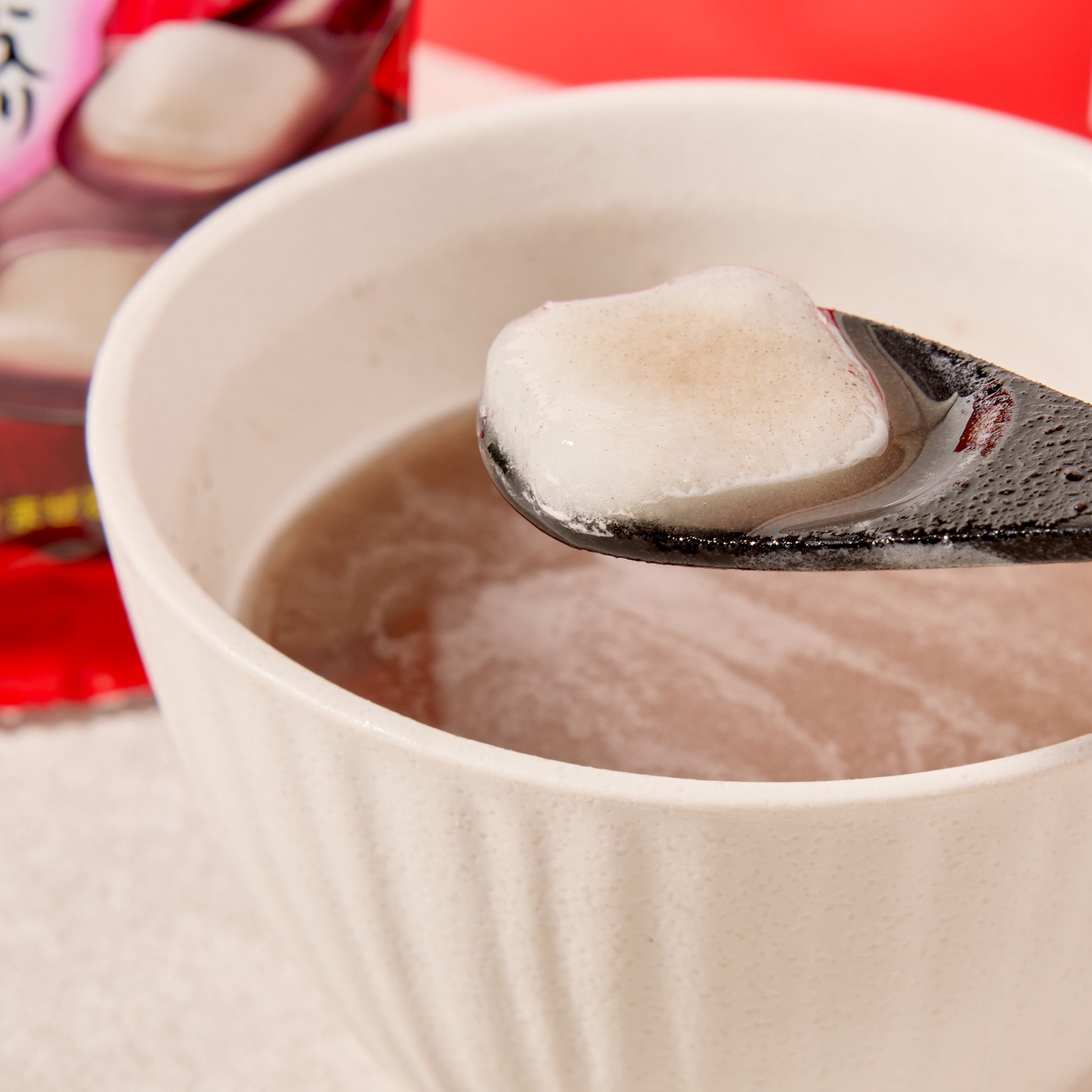 Shiruko is a sweet red bean soup traditionally enjoyed during the New Year season in Japan, symbolizing warmth and good fortune. This version blends two types of adzuki red bean powder for a rich flavor and includes two tender mochi pieces.