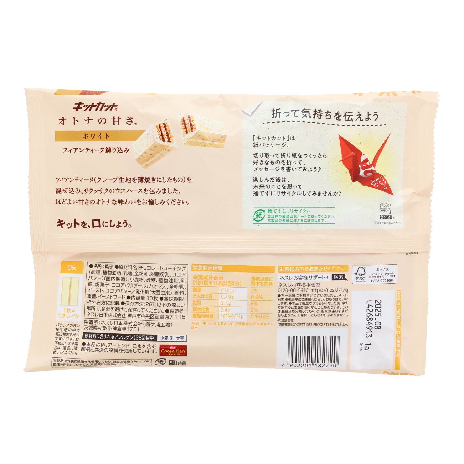 Featured in TokyoTreat's subscription box! White chocolate and crispy chocolate crepe come together in this Japan-limited KitKat! Layered with feuiletine, fried crepe dough, this KitKat has a subtle sweet flavor that's perfect for a quick treat!