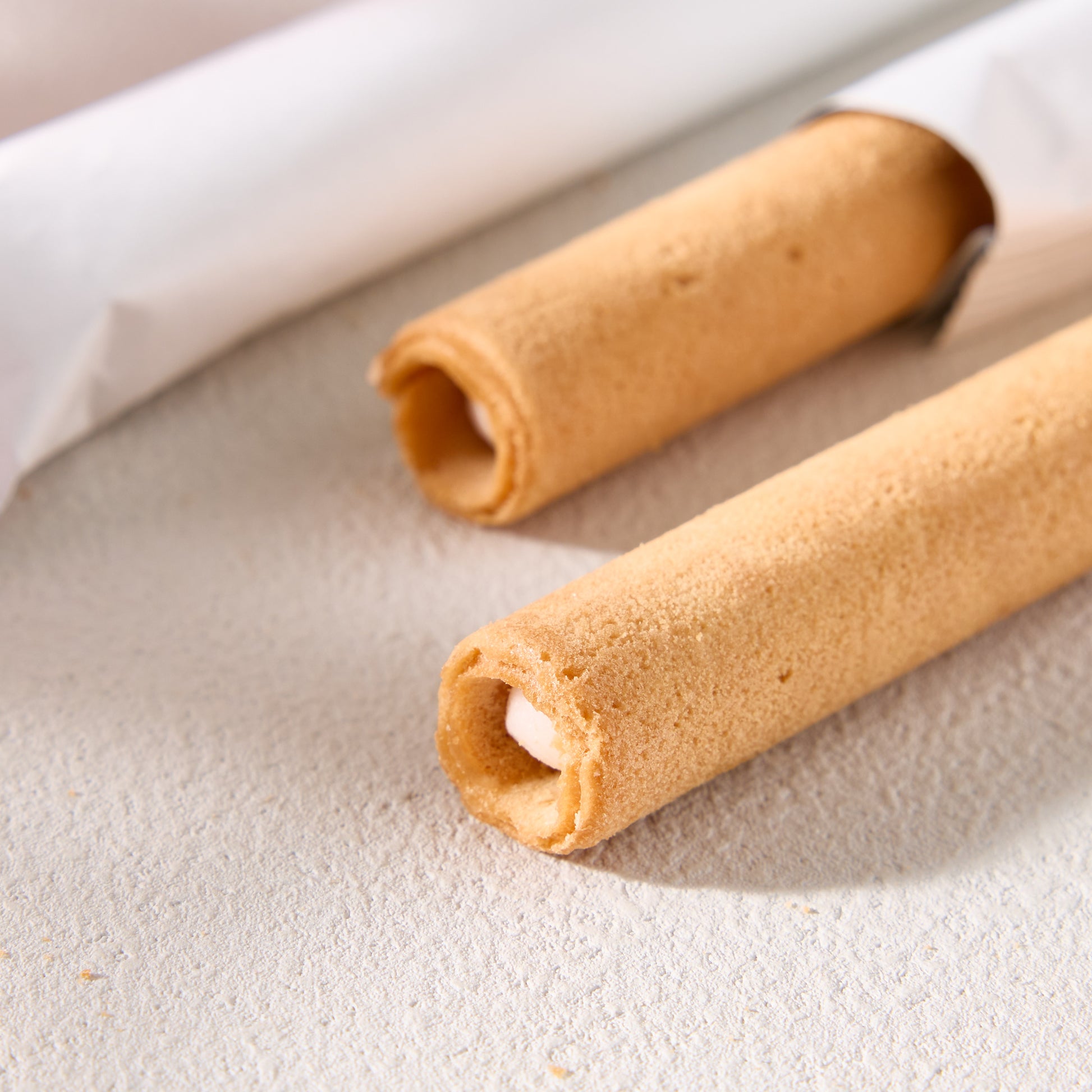 Enjoy the luscious taste of Amaou, the prized Japanese strawberry from Fukuoka prefecture, in these crispy wafer rolls.