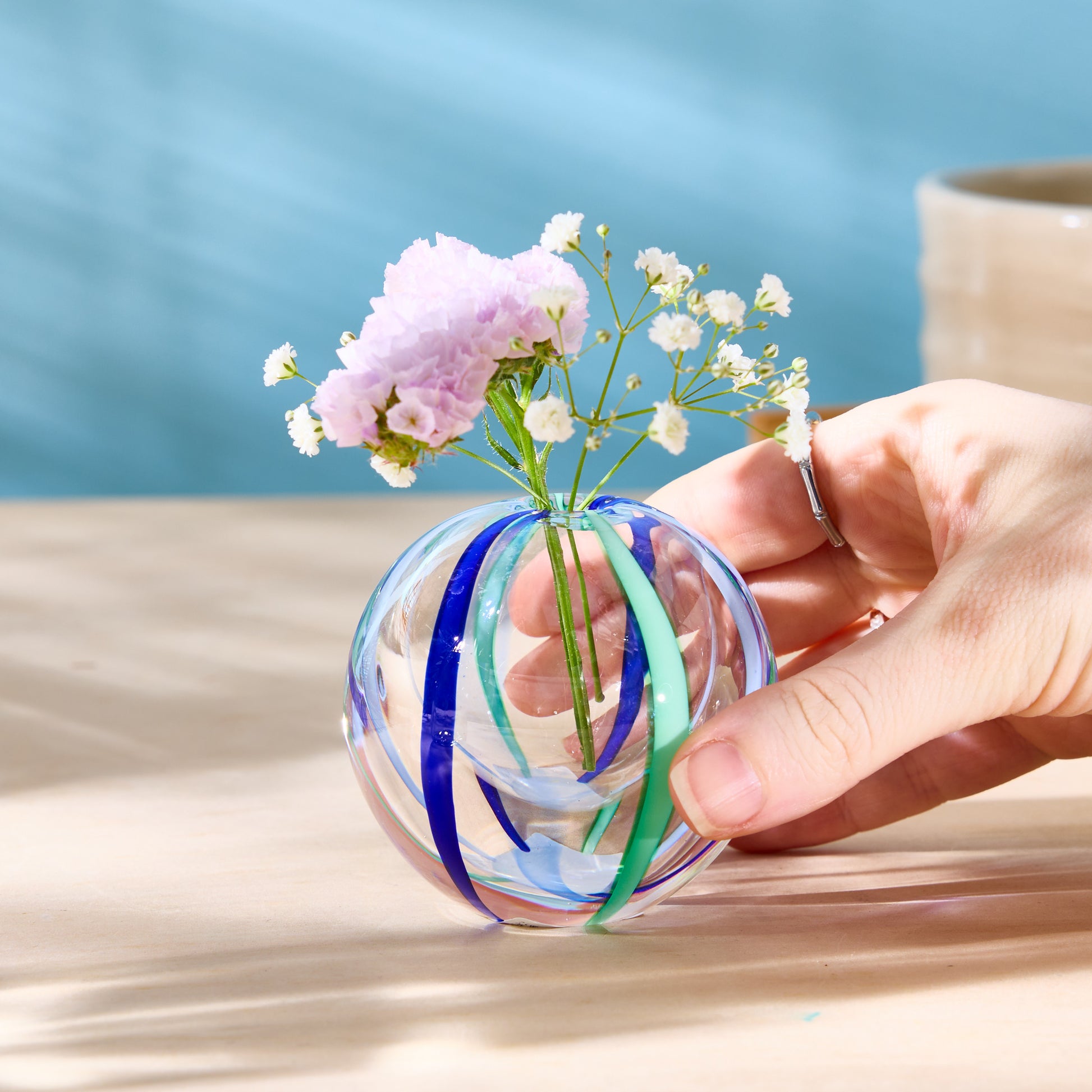 Evoking the shifting hues of a clear summer sky, this palm-sized ichirin zashi (一輪挿し) vase brings a sense of light and motion to any space.
