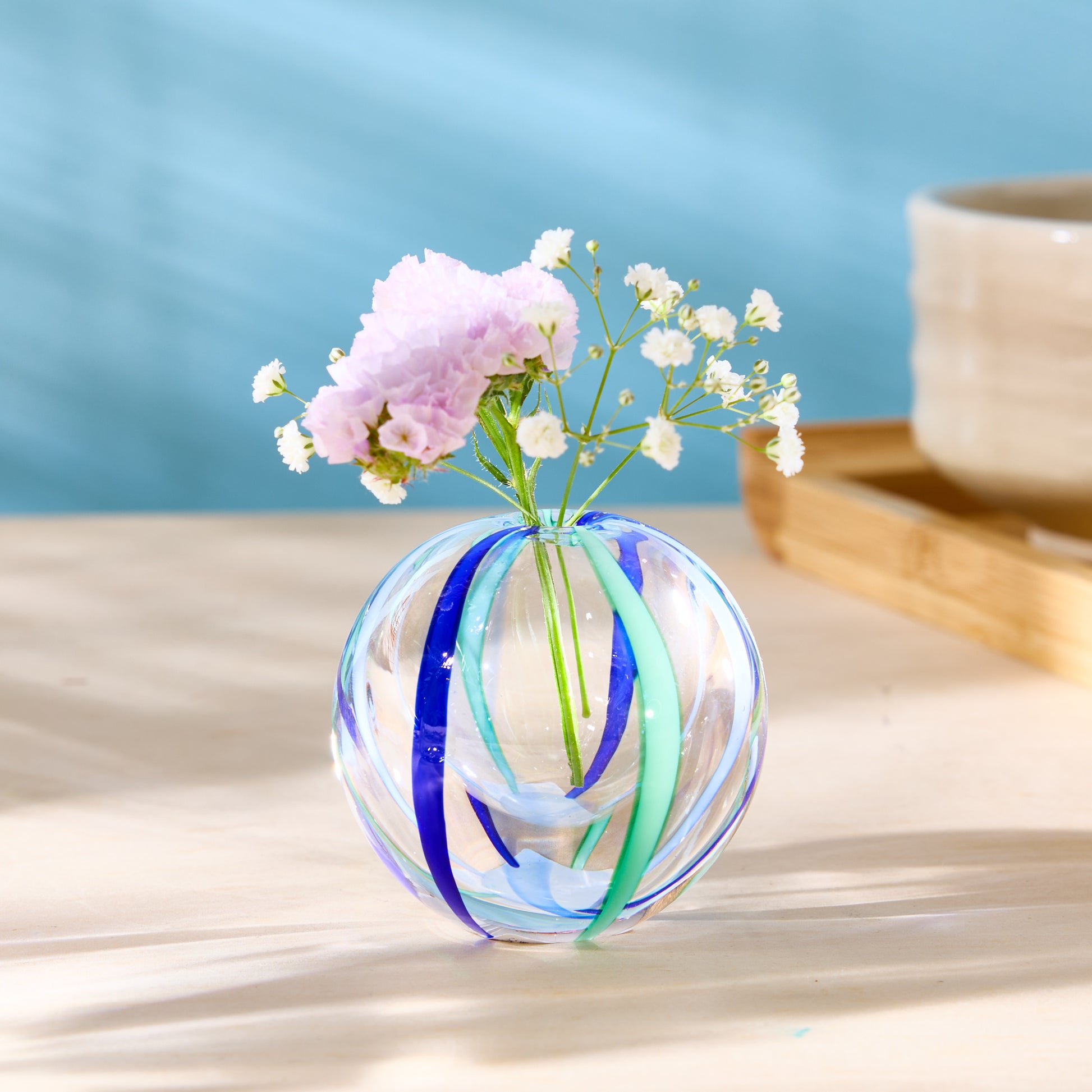 Designed to hold a single flower, ichirin zashi vases celebrate the beauty of simplicity in floral display. This piece features dynamic swirls of blue that capture the movement and brightness of the summer season. Compact yet eye-catching, it can be used as a single-stem vase, aroma diffuser, or decorative accent—bringing a refined touch to any space.