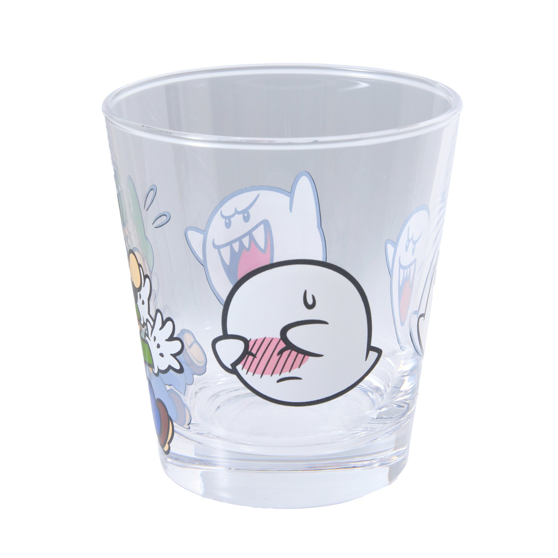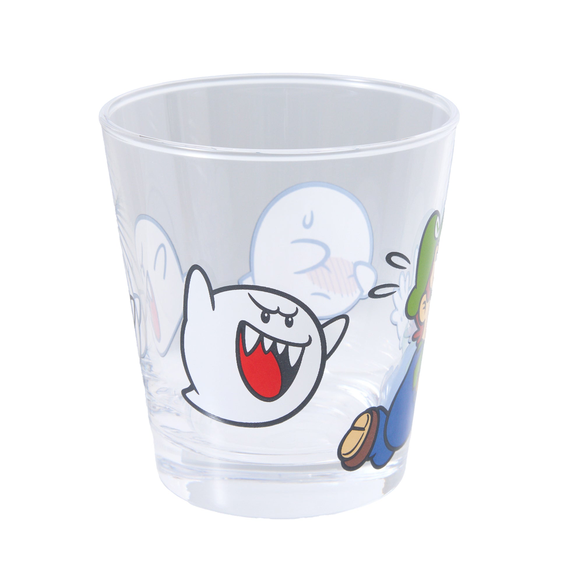 Add a spooky twist to your drinkware with the Super Mario Luigi & Boo Glass Cup!