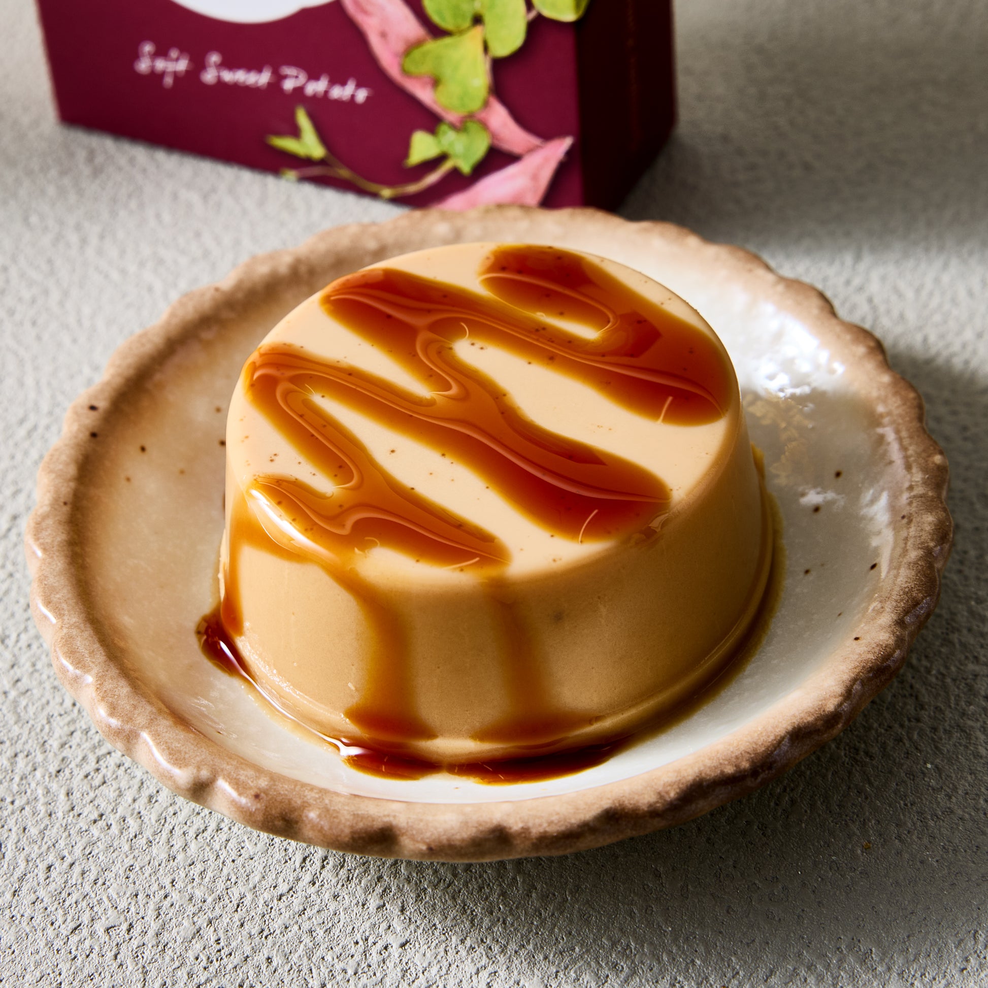 Savor the rich, velvety texture of this Japanese pudding, crafted with the natural sweetness of Japanese sweet potato. Made from Ohara’s perfectly baked sweet potatoes, each bite is firm yet smooth, capturing their deep, caramelized flavor. Enjoy it slightly chilled for the best experience, or drizzle with caramel sauce for an irresistible touch of indulgence.