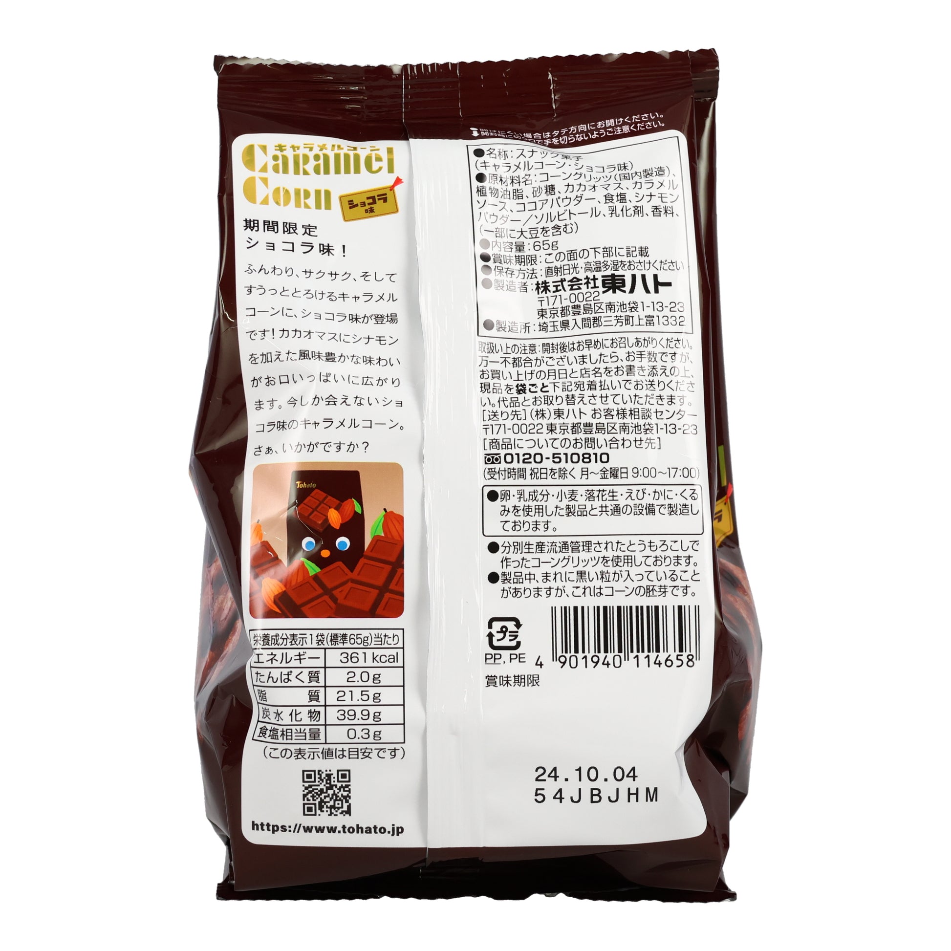 Savor the delightful combination of sweetness and crunch with Tohato Caramel Corn Chocolate.