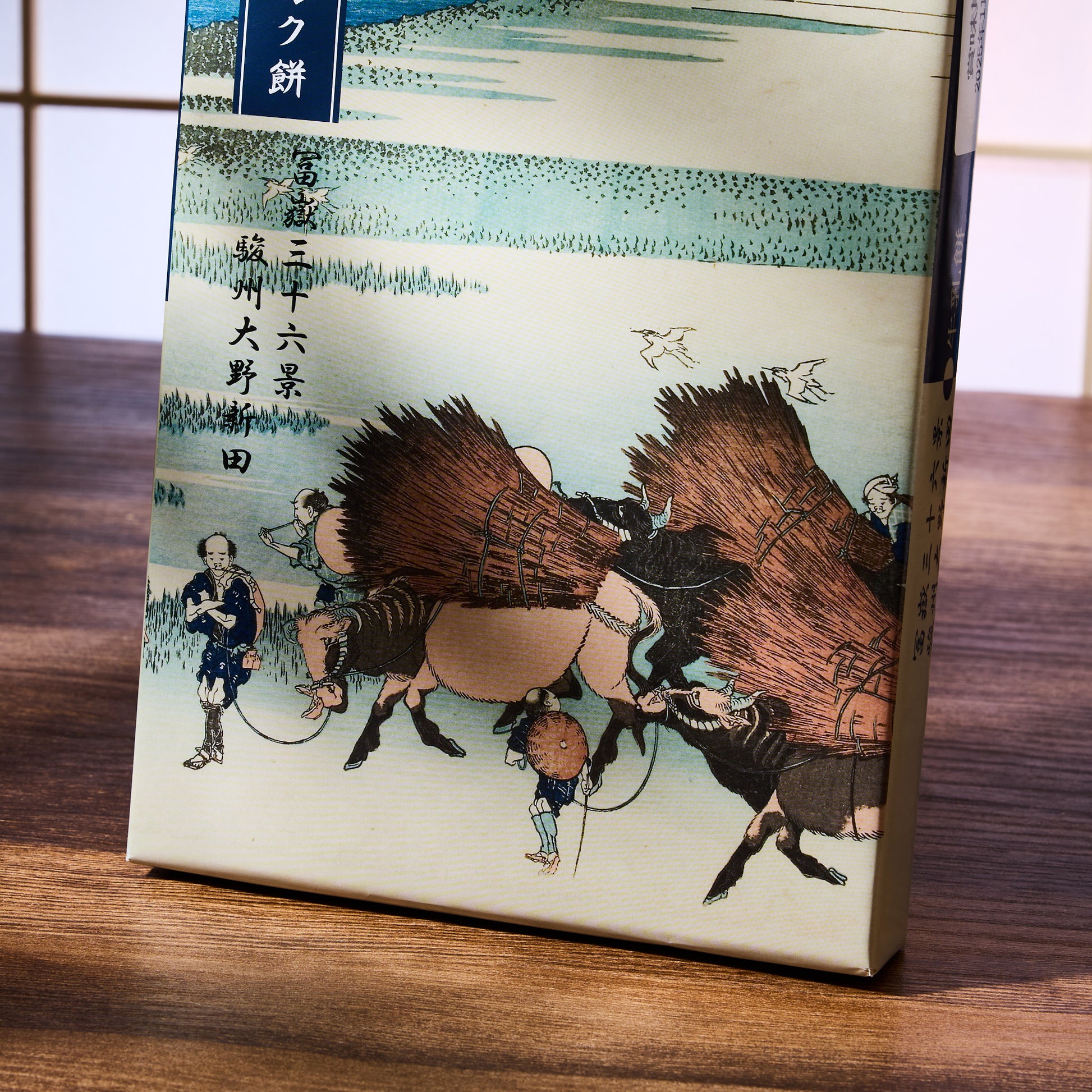 The package design is inspired by The New Fields at Ōno in Suruga Province, a celebrated ukiyo-e woodblock print by the world-renowned artist Hokusai, blending refined taste with the enduring beauty of Japanese art.
