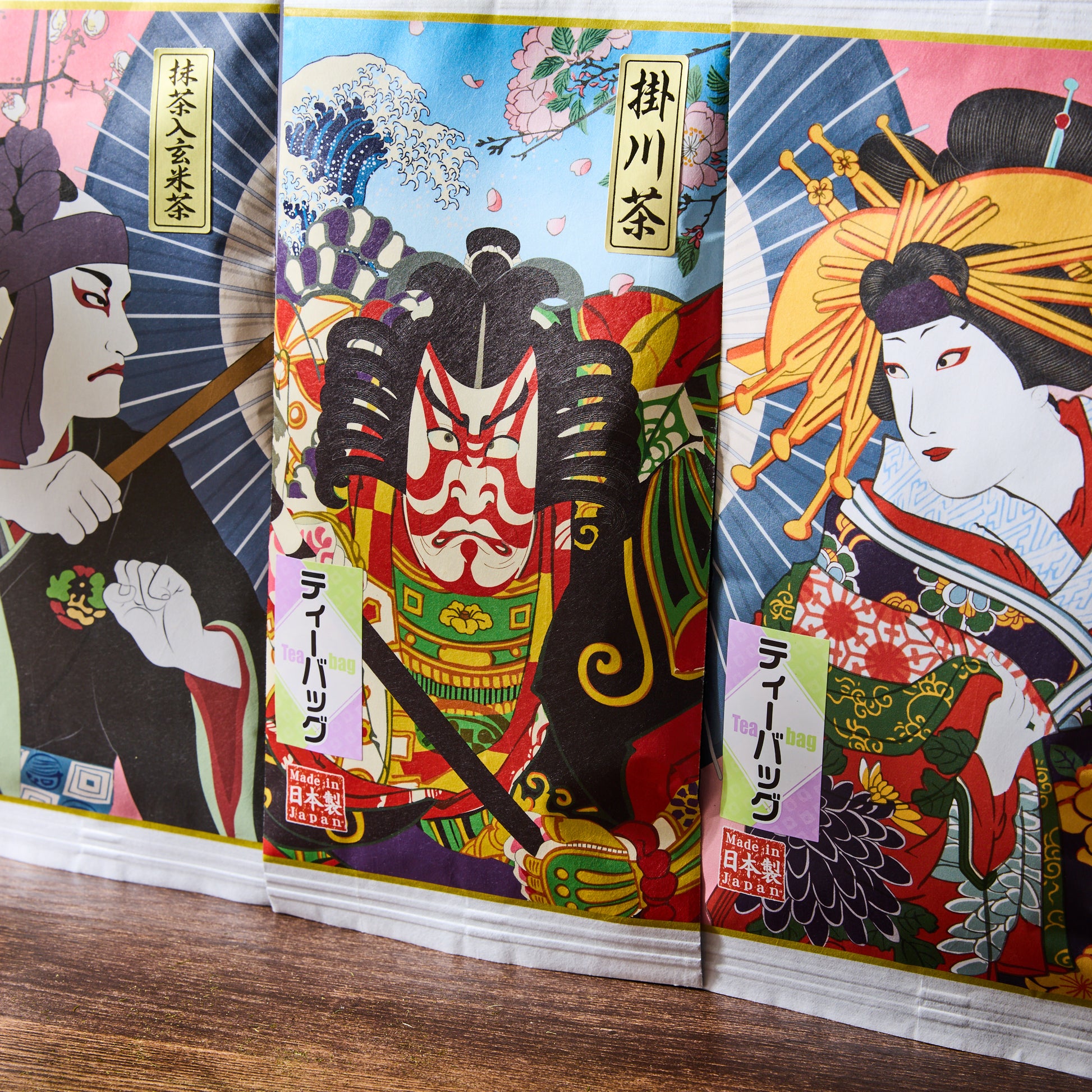 This elegant tea set showcases three carefully selected Japanese teas, each enveloped in packaging inspired by the timeless artistry of traditional ukiyo-e prints.