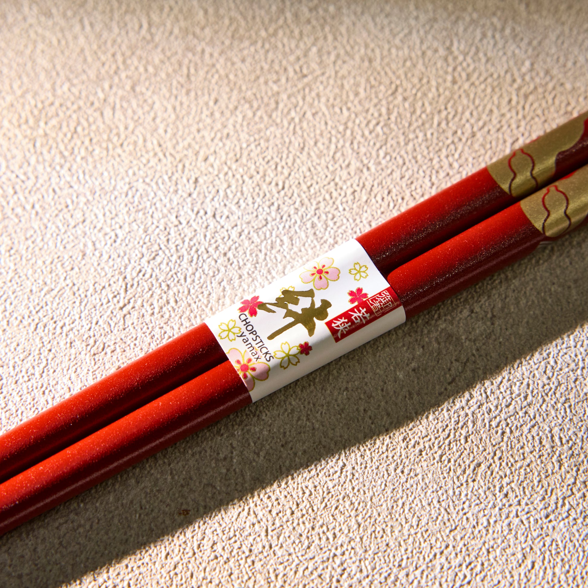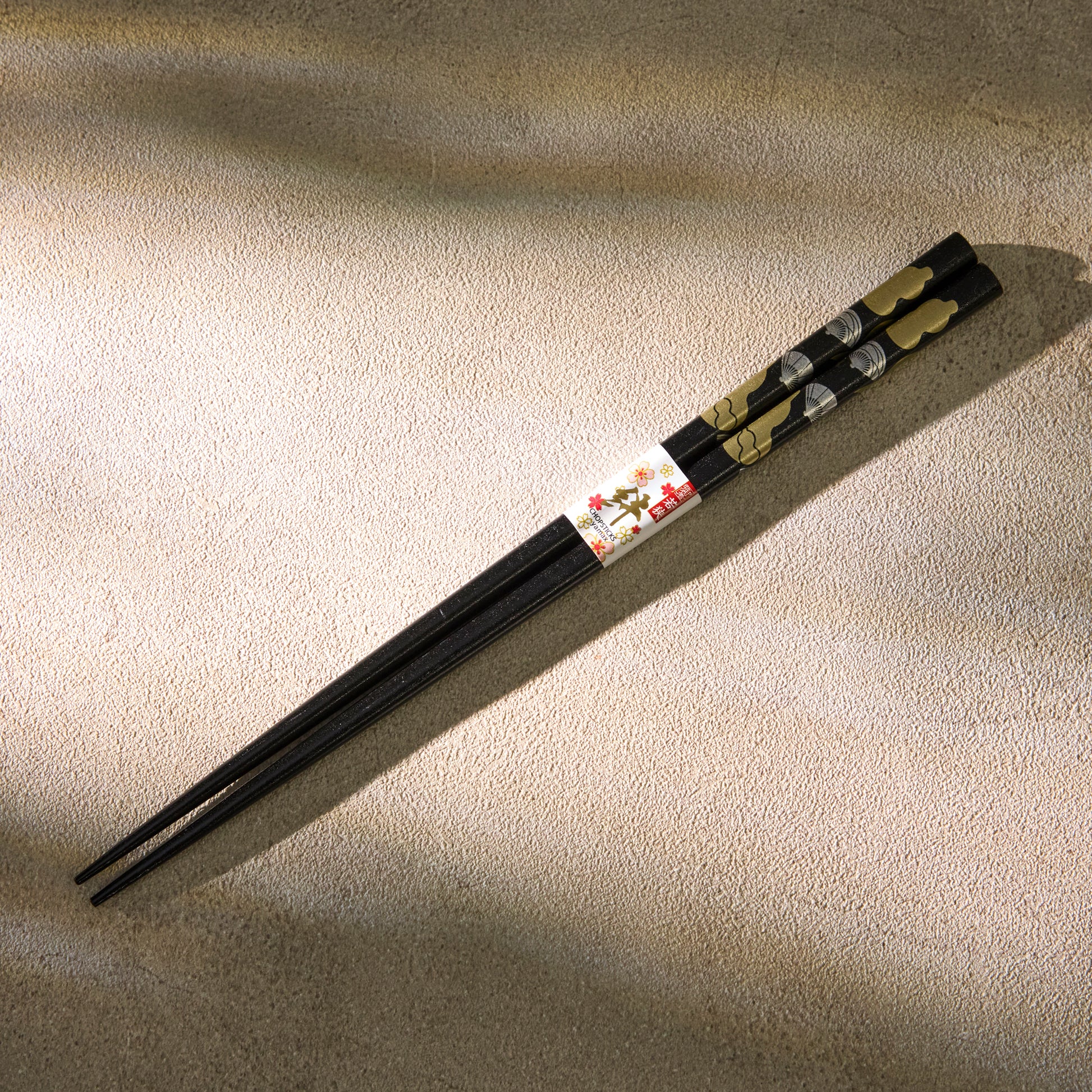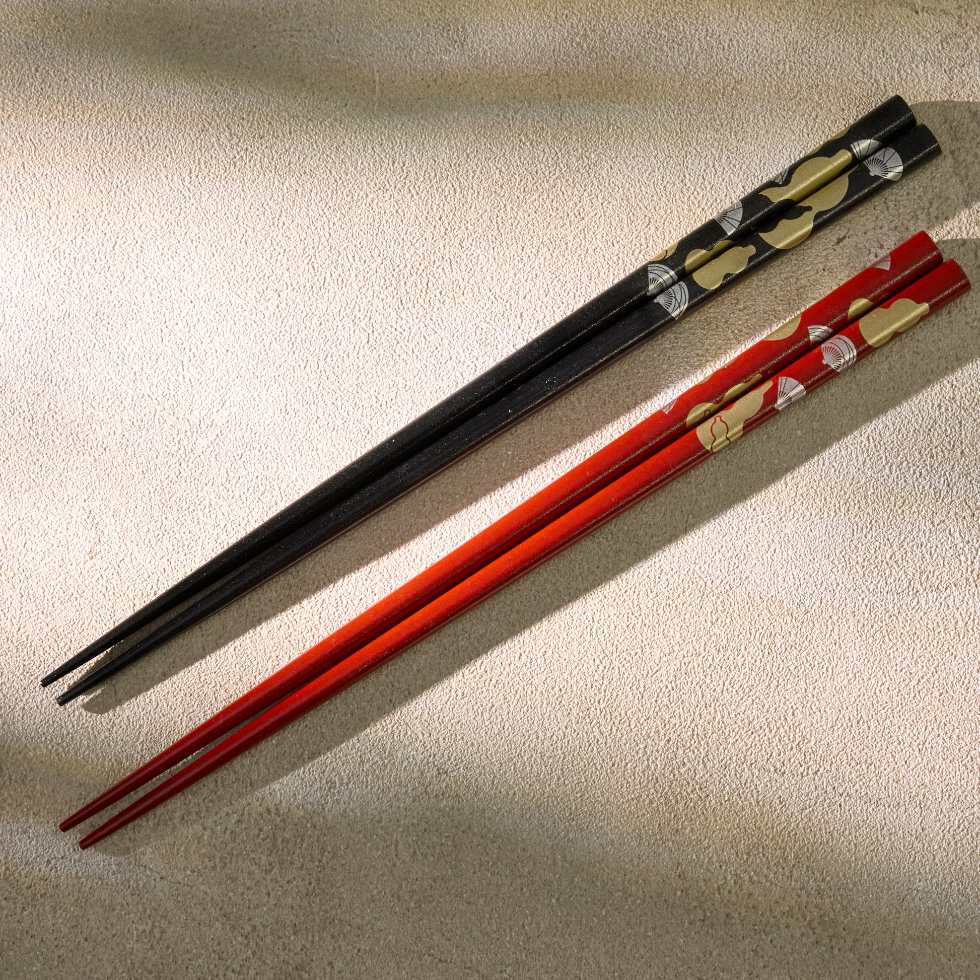Crafted in Fukui Prefecture using traditional Wakasa lacquerware techniques, these chopsticks reflect over 400 years of craftsmanship rooted along the Sea of Japan coast. The elegant design features hand-applied motifs of gourds and folding fans—symbols of prosperity, longevity, and celebration in Japanese culture. A refined example of regional artistry made for everyday use.
