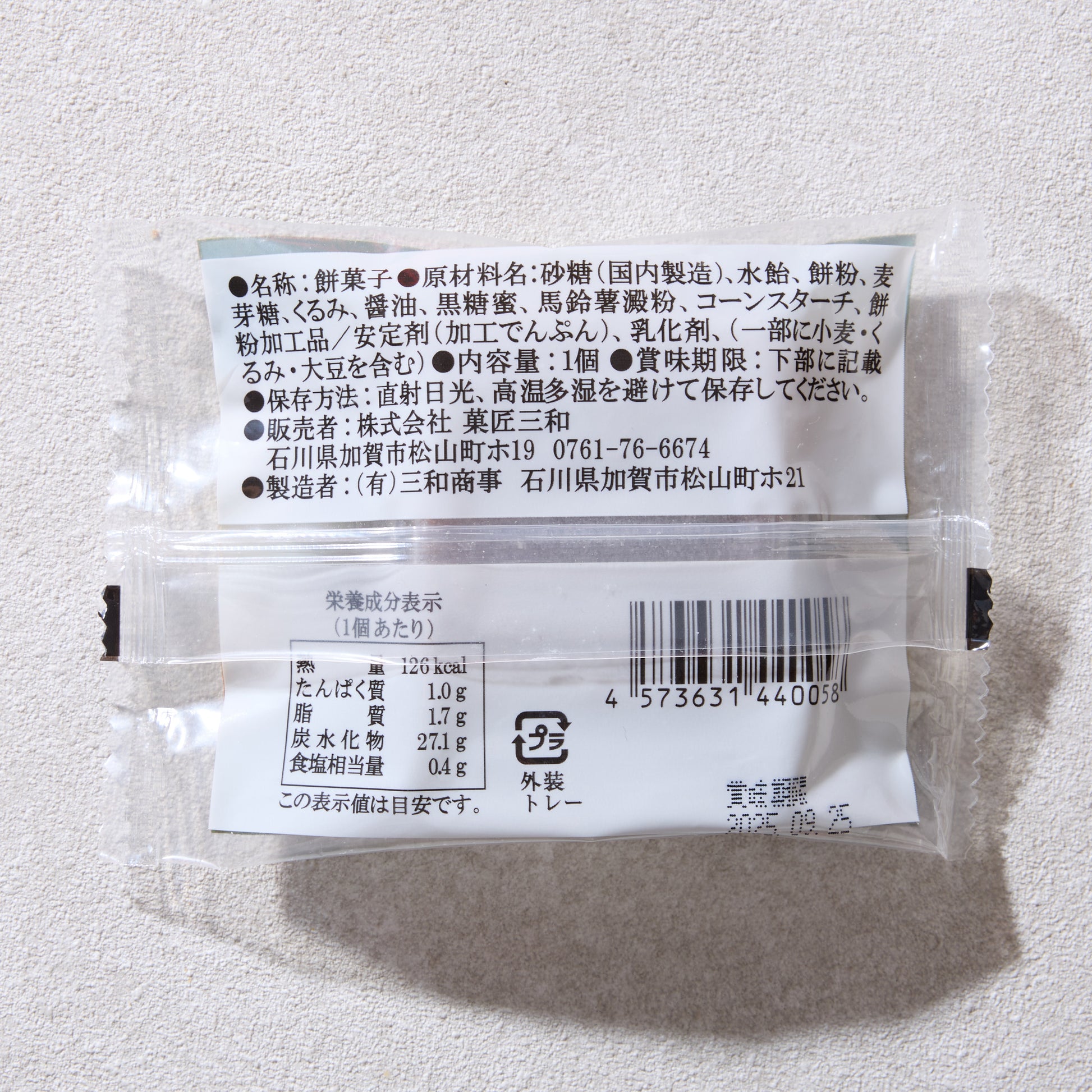 Each piece of this sweet-savory mochi is handcrafted by skilled artisans using Kaga soy sauce and infused with roasted Japanese walnuts, offering a comforting flavor with a satisfying crunch and rich depth.