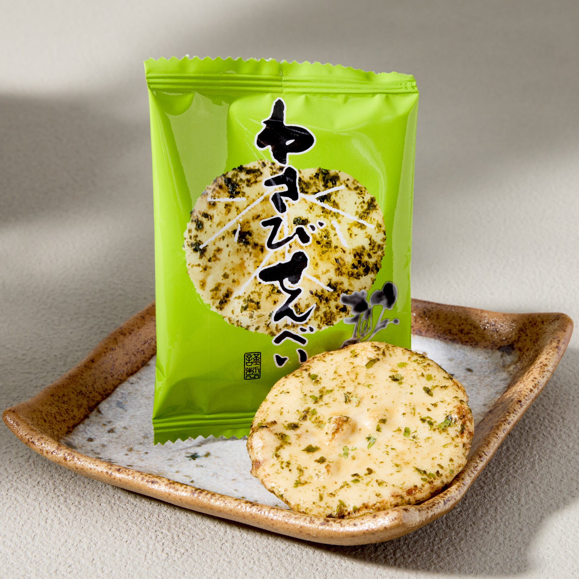 Experience a bold twist on a classic Japanese snack with these wasabi senbei, crafted using a special technique that preserves the bright, pungent heat of wasabi while enhancing it with savory soy sauce and the toasty aroma of roasted seaweed. Each crisp cracker delivers a layered flavor profile—spicy, salty, and umami-rich—making it perfect to enjoy on its own, as a companion to tea, paired with wine and cream cheese, or even alongside vanilla ice cream for a unique sweet-and-spicy treat.