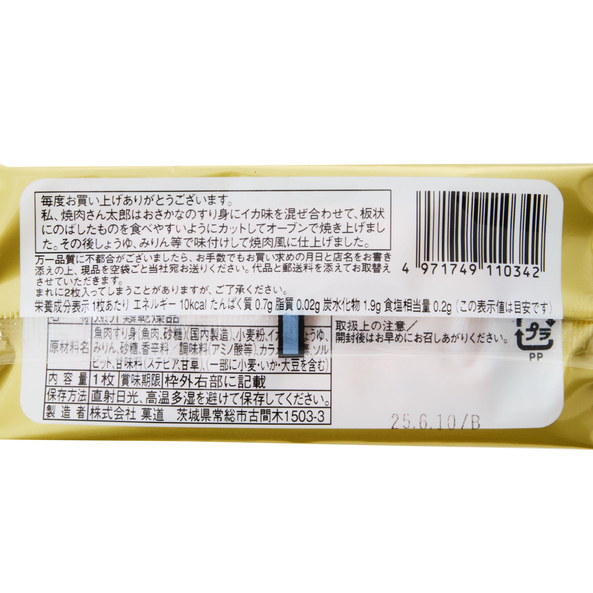 Indulge in the rich, smoky flavor of yakiniku with this chewy dagashi snack. Individually packaged in convenient strips, each bite offers an authentic taste of grilled meat that transports you straight to a bustling izakaya.