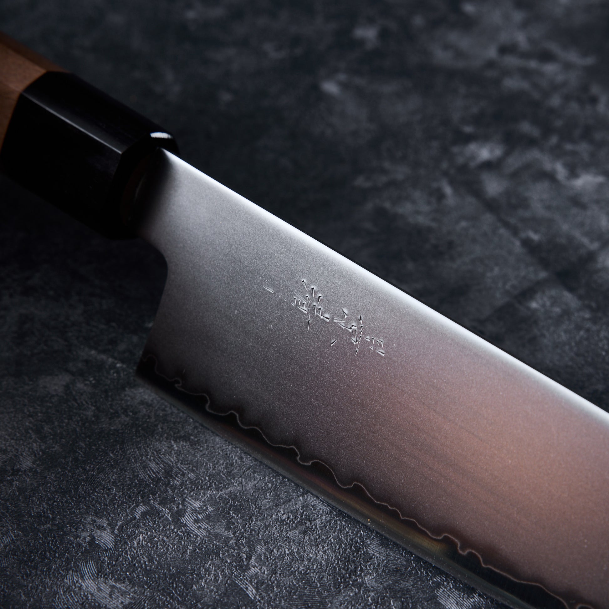 The blade is finished with a traditional Hamaguri, or “clam-shaped,” edge, named for its gently curved profile that reduces friction and resistance during cutting. This shape allows for smoother slicing and makes sharpening easier and more precise.